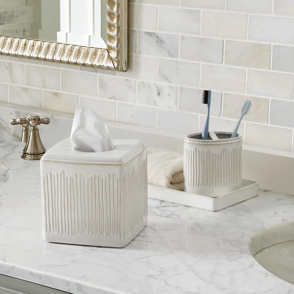 Motifeur Bathroom Accessories - Ceramic Tissue Holder Decorative Ivory