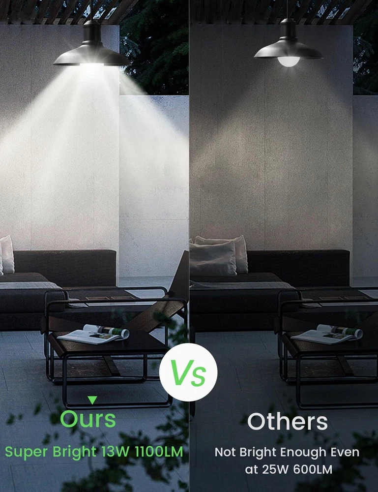 【Sensitive MOTION SENSOR】The motion sensor bulb will light up automatically while detects motion within 8-16FT in the dark, and off after motion ceased or disappeared about 45 seconds. NOTE: Make sure the sensor pointing down within proper distance and angle. To increase the sensitivity, you can adjust the Angle and Height of the bulb installation toward the direction people 【Dusk to Dawn Sensor】Built-in photocell sensor, deactivates the motion detecting function during the daylight hours (the bulb stays off all daytime-brightness above 40lux ), smarter and more energy saving 【Super Bright, Energy Saving & Life-span】13W 1100lm E26 Motion Sensor bulb, equivalent to 120W traditional bulbs, super Bright. Saves up to 85% energy. Last longer and energy saver 【Perfect Choice for Home Security】When stranger walks by your house, our outdoor motion sensor bulb will suddenly light up automatically, scaring them away and reminding you, bring safety to your families. (Tips: 1. Keep the security light bulb away from moisture and extreme heat. 2. It's best to mount the sensor light bulb 6-15ft above the ground, and position the motion sensor towards to the sensitivity zone. 3. It can not work with enclosed fixture, the motion sensor must exposed outside.) 【Wide Application & Quality assurance】5000K daylight motion sensor bulb is a perfect addition in a hallway, basement, porch, garage, storage room, or laundry room. E26 socket and recommended for Indoor use. Working Temperature: indoor and outdoor use if outside temperature is between 14°F(-10°C) and 95°F (35°C). If any problem or need support, please feel free to contact us on Amazon directly.(90-days free return, 5-years technical support)