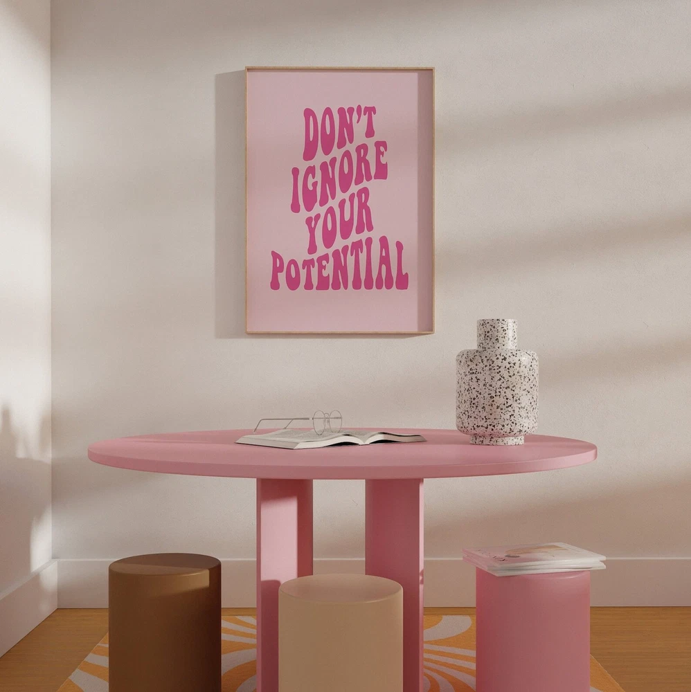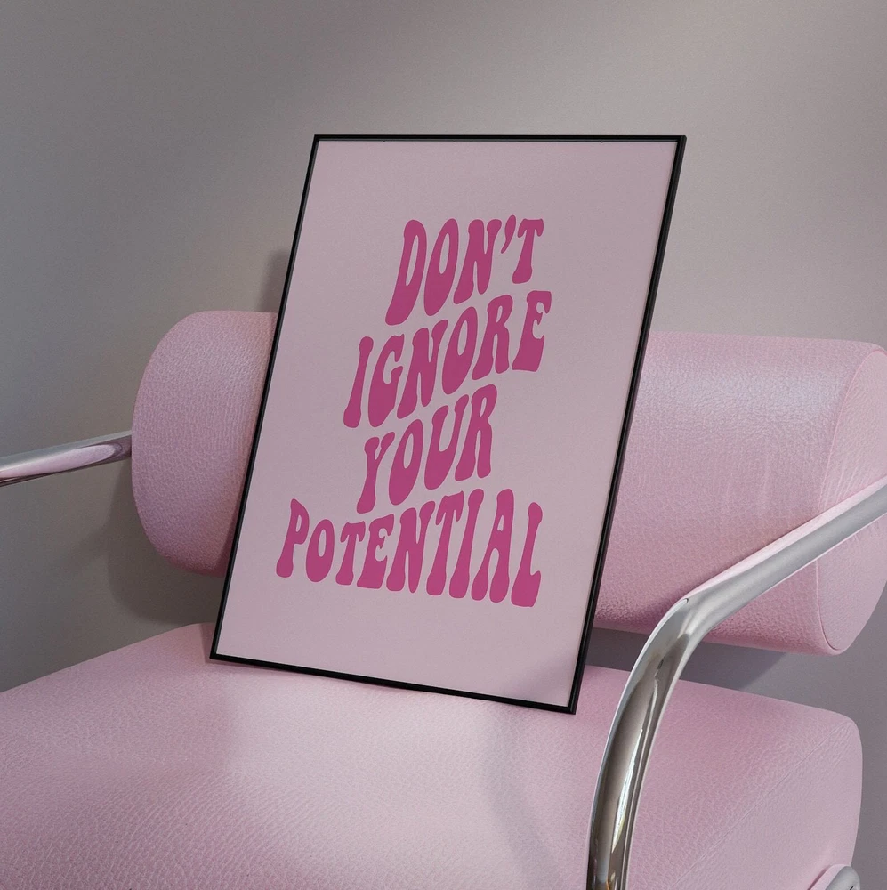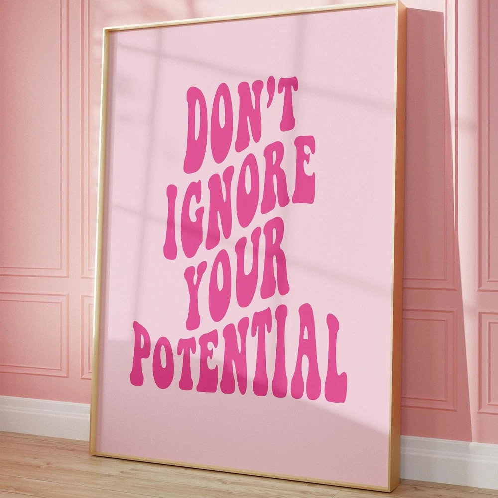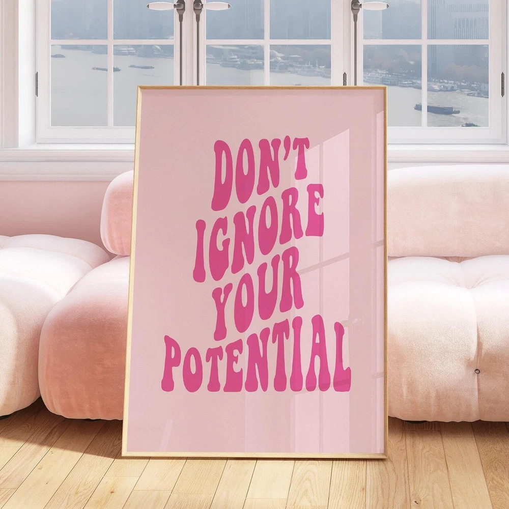 Motivation Wall Art Print Poster Your Potential Trendy Wall Art Prints Aesthetic Retro Decor Girly Preppy Pink Wall Art Trendy Print Material: Premium luster photo paper Print type: Inkjet printing One side printed + The finish provides the highest possible resolution and color saturation + Lasts up to 200 years in color and 400 years in black-and-white + Printed on high-quality resin-coated photo base paper medium + Posters can be hung with double-sided tape, tacks, or framed + Hand washing with a gentle cry cloth is recommended for extended durability I will hand select the best choice of paper for your chosen design to ensure top quality results for a beautiful, bright and luxurious print. All prints are sealed in cellophane slips for protection during transportation, and are shipped in a protective cardboard envelope.