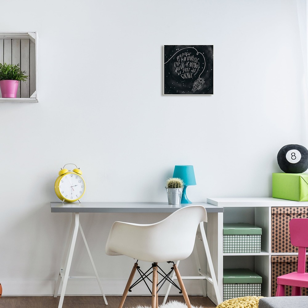 Proudly made in the USA, all of our wall plaques start off as high quality lithograph prints that are then mounted on durable 0.5 inch thick MDF wood. Each piece is hand finished and comes with a fresh layer of foil on the sides to give it a crisp clean look. It arrives ready to hang with no installation required, and comes with sturdy clear corners to keep it from damaging in transit.Features: Wall Art is Ready to Hang - No Installation or Hardware Needed. For Easy Set Up Lean or Layer Artwork on Shelf or Against Wall.All of our wall plaques start off as high quality lithograph prints that are then mounted on durable 0.5 inch thick MDF wood. Each piece is hand finished and comes with a fresh layer of foil on the sides to give it a crisp clean look. Made In USA.Artwork Relates To: Free Shipping Over $49.99* Details Stupell Motivational Brave Fearless Quote Astronaut Starry Sky Wood Wall Art - Product Description: Proudly made in the USA, all of our wall plaques start off as high quality lithograph prints that are then mounted on durable 0.5 inch thick MDF wood. Each piece is hand finished and comes with a fresh layer of foil on the sides to give it a crisp clean look. It arrives ready to hang with no installation required, and comes with sturdy clear corners to keep it from damaging in transit. Features: Wall Art is Ready to Hang - No Installation or Hardware Needed. For Easy Set Up Lean or Layer Artwork on Shelf or Against Wall. All of our wall plaques start off as high quality lithograph prints that are then mounted on durable 0.5 inch thick MDF wood. Each piece is hand finished and comes with a fresh layer of foil on the sides to give it a crisp clean look. Made In USA. Artwork Relates ToCalligraphy; Astronaut, Outer Space, Sky, Stars Design by Rachel Nieman