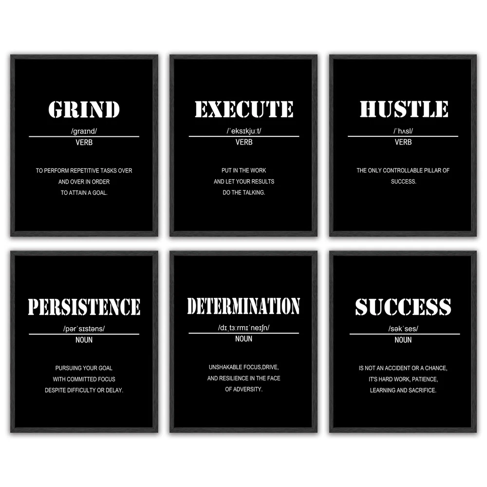 ๐๐๐๐๐๐๐ผ๐๐๐๐๐ผ๐ ๐๐ผ๐๐ ๐ผ๐๐ - Motivational sentences can give you inspiration and motivation, and encourage you when you need it. Hanging it in your office or room can help you gain motivation in the long work, keep moving forward and grow. ๐ฅ๐๐๐๐ฌ ๐ง๐ข ๐๐๐ก๐ - 8"x 10", Set of 6, The Inspirational wall art is wrapped in a black frame, with a solid wood back panel at the back. It can be directly suspended by a hook. CLEAR ๐ฃ๐ฅ๐๐ก๐ง๐๐ก๐ - Canvas paintings are smooth and elastic, thick and wrinkle-resistant, waterproof and fade-resistant. Definition printing on the surface makes the pattern more vivid and life like; no one will miss your room wall art! No matter if it is kids room decor or office decorations for adults, this office wall art is perfect! ๐๐ผ๐๐พ๐๐๐๐ ๐๐๐๐ ๐ฟ๐๐พ๐๐ - This is the wall decor that was missing from your room! Make a delightful inspirational quote artwork for walls for your office wall decor! Make an empty wall no longer monotonous. Office wall decoration, women's room decoration, men's bedroom art decoration, living room decoration, children's room, small wall art. ๐ผ๐๐๐๐๐๐๐พ ๐๐๐๐๐๐พ๐๐๐๐ - Beautify and enhance the hierarchy of home decor. Office inspirational wall art, inspirational wall decor for living room, office inspirational quote print, framed quote pictures and more. ๐๐ฅ๐๐๐ง ๐๐๐ข๐๐๐ - Motivational wall art can bring you inspiration and creativity. You can give it to your family, friends or other people you care about. These are very suitable and can be part of an office or home decoration.