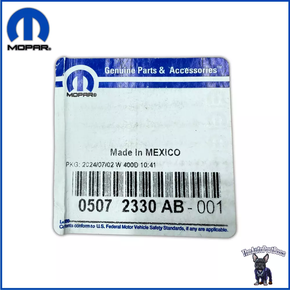 Message Us BRAND NEW MOPAR GENUINE ORDERS ARE SHIPPED SAME DAY IF PLACED BEFORE 5 PM EST If Express or Expedited shipping is not available, please contact us. GENUINE MOPAR PART # 5072330AB Radiator Fan Motor Key Features: Quality and Fit OEM Standards 100% Genuine Part Ready to Order? Don't miss out on this high-quality, genuine part. Order now and enjoy fast shipping! If you are not sure this will fit your vehicle, please message us your VIN before ordering to verify compatibility. FOR: Year Make Model Body & Trim Engine & Transmission 2023 Chrysler 300 C 6.4L V8 - Gas 2023 Dodge Challenger R/T Scat Pack, R/T Scat Pack Widebody 6.4L V8 - Gas 2023 Dodge Charger Scat Pack, Scat Pack Widebody 6.4L V8 - Gas 2022 Chrysler 300 S, Touring, Touring L 3.6L V6 - Flex, 3.6L V6 - Gas, 5.7L V8 - Gas 2022 Dodge Challenger R/T Scat Pack, R/T Scat Pack Widebody 6.4L V8 - Gas 2022 Dodge Charger GT, R/T, SRT Hellcat Redeye Widebody, SRT Hellcat Widebody, SRT Jailbreak, SXT, Scat Pack, Scat Pack Widebody 3.6L V6 - Flex, 3.6L V6 - Gas, 5.7L V8 - Gas, 6.2L V8 - Gas, 6.4L V8 - Gas 2021 Chrysler 300 S, Touring, Touring L 3.6L V6 - Flex, 3.6L V6 - Gas, 5.7L V8 - Gas 2021 Dodge Challenger R/T Scat Pack, R/T Scat Pack Widebody 6.4L V8 - Gas 2021 Dodge Charger Scat Pack 6.4L V8 - Gas 2020 Chrysler 300 C, Limited, S, Touring, Touring L 3.6L V6 - Flex, 3.6L V6 - Gas, 5.7L V8 - Gas 2020 Dodge Challenger R/T Scat Pack, R/T Scat Pack Widebody 6.4L V8 - Gas 2020 Dodge Charger GT, Pursuit, R/T, SRT Hellcat, SRT Hellcat Widebody, SXT, Scat Pack 3.6L V6 - Flex, 3.6L V6 - Gas, 5.7L V8 - Gas, 6.2L V8 - Gas, 6.4L V8 - Gas 2019 Chrysler 300 C, Limited, S, Touring, Touring L 3.6L V6 - Flex, 3.6L V6 - Gas, 5.7L V8 - Gas 2019 Dodge Charger GT, Pursuit, R/T, SRT Hellcat, SXT, Scat Pack 3.6L V6 - Flex, 3.6L V6 - Gas, 5.7L V8 - Gas, 6.2L V8 - Gas, 6.4L V8 - Gas 2018 Chrysler 300 C, Limited, S, Touring, Touring L 3.6L V6 - Flex, 3.6L V6 - Gas, 5.7L V8 - Gas 2018 Dodge Charger GT, GT Plus, Pursuit, R/T, R/T Scat Pack, SRT 392, SRT Hellcat, SXT, SXT Plus, SXT Plus Leather 3.6L V6 - Flex, 3.6L V6 - Gas, 5.7L V8 - Gas, 6.2L V8 - Gas, 6.4L V8 - Gas 2017 Chrysler 300 C, C Platinum, Limited, S 3.6L V6 - Flex, 3.6L V6 - Gas, 5.7L V8 - Gas 2017 Dodge Challenger R/T Scat Pack, SRT 392, T/A 392 6.4L V8 - Gas 2017 Dodge Charger Pursuit, R/T, R/T Scat Pack, SE, SRT 392, SRT Hellcat, SXT 3.6L V6 - Flex, 5.7L V8 - Gas, 6.2L V8 - Gas, 6.4L V8 - Gas 2016 Chrysler 300 C, C Platinum, Limited, S 3.6L V6 - Flex, 3.6L V6 - Gas, 5.7L V8 - Gas 2016 Dodge Challenger 392 Hemi Scat Pack Shaker, R/T Scat Pack, SRT 392 6.4L V8 - Gas 2016 Dodge Charger Pursuit, R/T, R/T Road & Track, R/T Scat Pack, SE, SRT 392, SRT Hellcat, SXT 3.6L V6 - Flex, 5.7L V8 - Gas, 6.2L V8 - Gas, 6.4L V8 - Gas 2015 Chrysler 300 C, C Platinum, Limited, S 3.6L V6 - Flex, 3.6L V6 - Gas, 5.7L V8 - Gas 2015 Dodge Challenger SRT 392, Scat Pack 6.4L V8 - Gas 2015 Dodge Charger Pursuit, R/T, R/T Road & Track, R/T Scat Pack, SE, SRT 392, SRT Hellcat, SXT 3.6L V6 - Flex, 5.7L V8 - Gas, 6.2L V8 - Gas, 6.4L V8 - Gas 2014 Chrysler 300 Base, C, C Luxury, S, SRT8 3.6L V6 - Flex, 3.6L V6 - Gas, 5.7L V8 - Gas, 6.4L V8 - Gas 2014 Dodge Charger Pursuit, R/T, SE, SRT8, SXT 3.6L V6 - Flex, 3.6L V6 - Gas, 5.7L V8 - Gas, 6.4L V8 - Gas 2013 Chrysler 300 Base, C, C Luxury, S, SRT8, SRT8 Core 3.6L V6 - Flex, 3.6L V6 - Gas, 5.7L V8 - Gas, 6.4L V8 - Gas 2013 Dodge Challenger SRT8 6.4L V8 - Gas 2013 Dodge Charger Pursuit, R/T, SE, SRT8, SXT 3.6L V6 - Flex, 3.6L V6 - Gas, 5.7L V8 - Gas, 6.4L V8 - Gas 2012 Chrysler 300 Base, C, C Luxury, Limited, S, SRT8 3.6L V6 - Flex, 3.6L V6 - Gas, 5.7L V8 - Gas, 6.4L V8 - Gas 2012 Dodge Challenger SRT8 6.4L V8 - Gas 2012 Dodge Charger Pursuit, R/T, SE, SRT8, SXT, SXT Plus 3.6L V6 - Flex, 3.6L V6 - Gas, 5.7L V8 - Gas, 6.4L V8 - Gas 2011 Dodge Challenger SRT8 6.4L V8 - Gas 2011 Dodge Charger Pursuit, R/T, SE 3.6L V6 - Flex, 3.6L V6 - Gas, 5.7L V8 - Gas 2010 Chrysler 300 C, C SRT8, Limited, S, Touring 2.7L V6 - Gas, 3.5L V6 - Gas, 5.7L V8 - Gas, 6.1L V8 - Gas 2010 Dodge Challenger R/T, SRT8 5.7L V8 - Gas, 6.1L V8 - Gas 2010 Dodge Charger Pursuit, R/T, SE, SRT8, SXT 2.7L V6 - Gas, 3.5L V6 - Gas, 5.7L V8 - Gas, 6.1L V8 - Gas 2009 Chrysler 300 C, C SRT8, Limited, Signature Series, Touring 3.5L V6 - Gas, 5.7L V8 - Gas, 6.1L V8 - Gas 2009 Dodge Challenger R/T, SE, SRT8 3.5L V6 - Gas, 5.7L V8 - Gas, 6.1L V8 - Gas 2009 Dodge Charger Pursuit, R/T, SE, SRT8, SXT 2.7L V6 - Gas, 3.5L V6 - Gas, 5.7L V8 - Gas, 6.1L V8 - Gas 2008 Chrysler 300 C, C SRT8, LX, Limited, Touring 2.7L V6 - Gas, 3.5L V6 - Gas, 5.7L V8 - Gas, 6.1L V8 - Gas 2008 Dodge Challenger SRT8 6.1L V8 - Gas 2008 Dodge Charger Pursuit, R/T, SE, SRT8, SXT 2.7L V6 - Gas, 3.5L V6 - Gas, 5.7L V8 - Gas, 6.1L V8 - Gas 2008 Dodge Magnum R/T, SE, SRT8, SXT 2.7L V6 - Gas, 3.5L V6 - Gas, 5.7L V8 - Gas, 6.1L V8 - Gas 2007 Chrysler 300 Base, C, C SRT8, Limited, Touring 2.7L V6 - Gas, 3.5L V6 - Gas, 5.7L V8 - Gas, 6.1L V8 - Gas 2007 Dodge Charger Pursuit, R/T, SE, SRT8, SXT 2.7L V6 - Gas, 3.5L V6 - Gas, 5.7L V8 - Gas, 6.1L V8 - Gas 2007 Dodge Magnum R/T, SE, SRT8, SXT 2.7L V6 - Gas, 3.5L V6 - Gas, 5.7L V8 - Gas, 6.1L V8 - Gas 2006 Chrysler 300 Base, C, Touring 2.7L V6 - Gas, 3.5L V6 - Gas, 5.7L V8 - Gas 2006 Chrysler Sebring Base 2.4L L4 - Gas 2006 Dodge Charger R/T, SE, SRT8 3.5L V6 - Gas, 5.7L V8 - Gas, 6.1L V8 - Gas 2006 Dodge Magnum R/T, SE, SRT8, SXT 2.7L V6 - Gas, 3.5L V6 - Gas, 5.7L V8 - Gas, 6.1L V8 - Gas 2006 Dodge Stratus SXT 2.4L L4 - Gas 2005 Chrysler 300 Base, C, Touring 2.7L V6 - Gas, 3.5L V6 - Gas, 5.7L V8 - Gas 2005 Chrysler Sebring Base 2.4L L4 - Gas 2005 Dodge Magnum R/T, SE, SXT 2.7L V6 - Gas, 3.5L V6 - Gas, 5.7L V8 - Gas 2005 Dodge Stratus SXT 2.4L L4 - Gas 2004 Chrysler Sebring Base 2.4L L4 - Gas 2004 Dodge Stratus SE, SXT 2.4L L4 - Gas 2003 Chrysler Sebring LX 2.4L L4 - Gas 2003 Dodge Stratus ES, SE, SXT 2.4L L4 - Gas 2002 Chrysler Sebring LX 2.4L L4 - Gas 2002 Dodge Stratus ES, SE, SE Plus 2.4L L4 - Gas 2001 Chrysler Seb