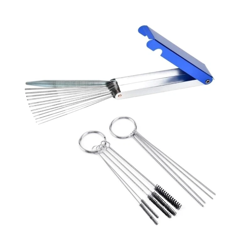 Features: Keep your Motorbike carburetor clean and performing at its best with the carburetor carbon dirt jet cleaner. This comprehensive tool includes cleaning wires, and cleaning Needle providing everything you require for thorough carburetor cleaning. Perfect for Motorbike enthusiasts and maintenance expert, this tool make carburetor cleaning convenient. From removing carbon deposits to clearing blockages, this tool is perfect for maintaining good carburetor function. Say goodbye to carburetor issues and hello to smooth rides with the carburetor cleaning Ensure your engine runs smoothly and efficiently. Specifications: Material:Metal Quantity:15,10 Package Includes: 1Set Carburetor Cleaning note: Please allow 1mm errors due to manual measurement. Due to the difference between different monitors, the picture may not reflect the actual color of the item.