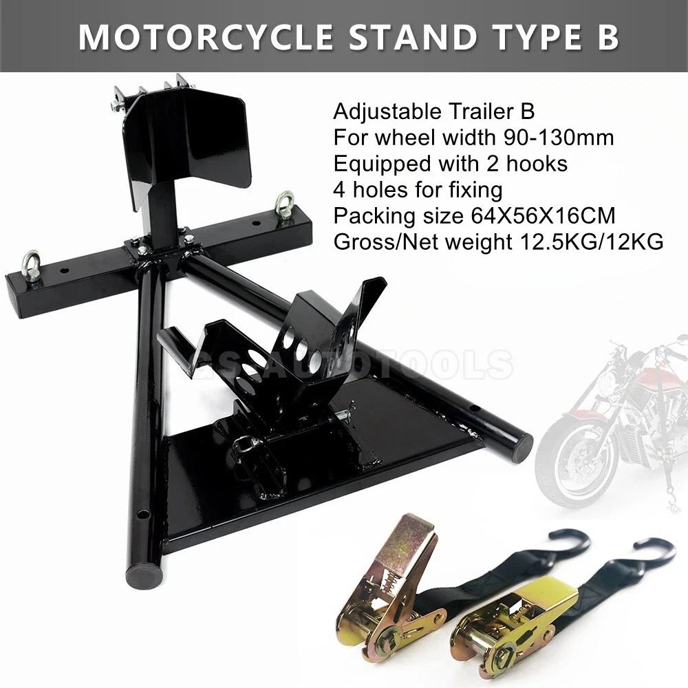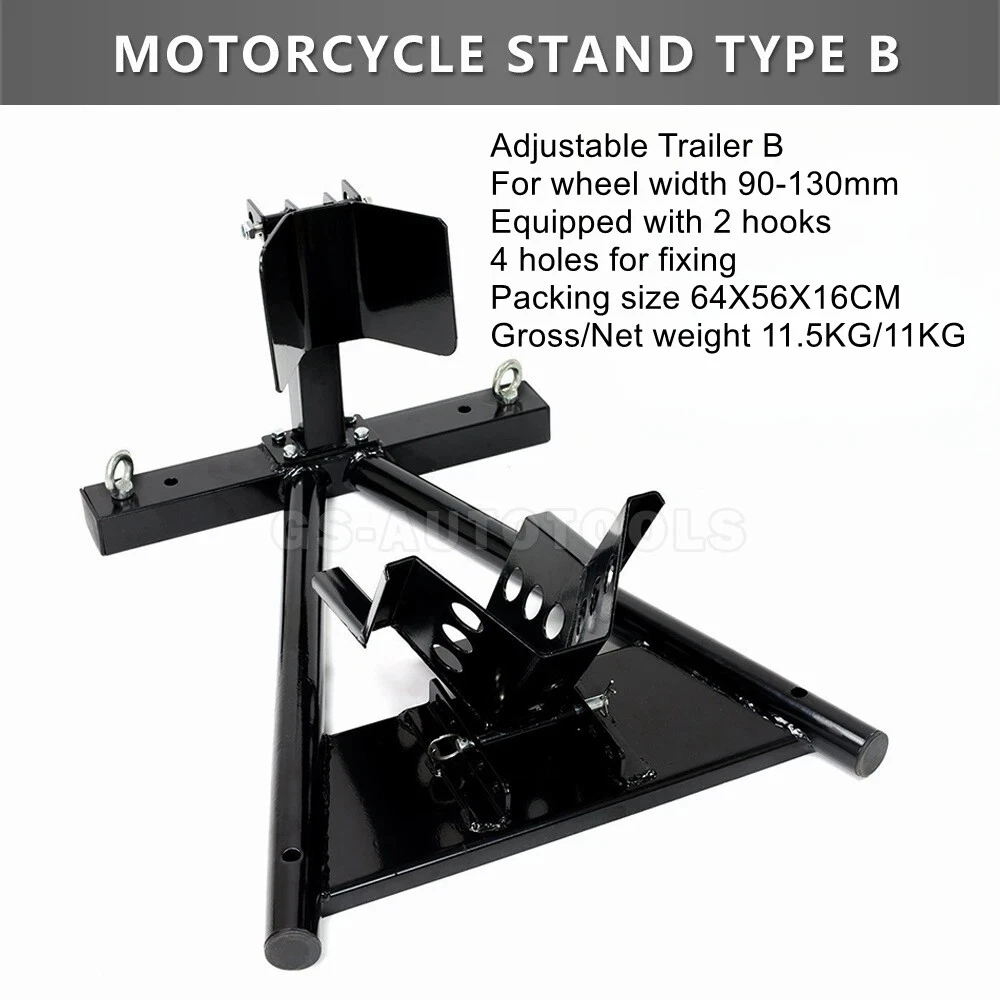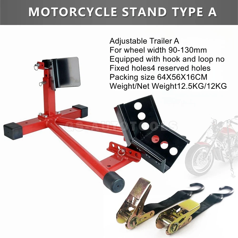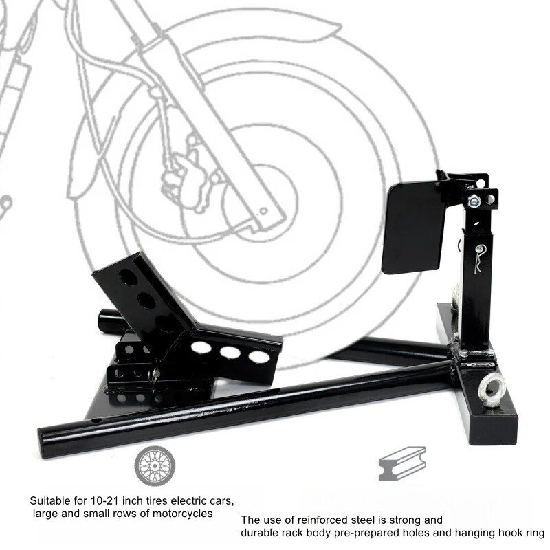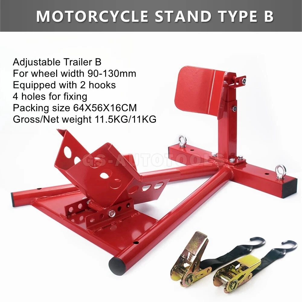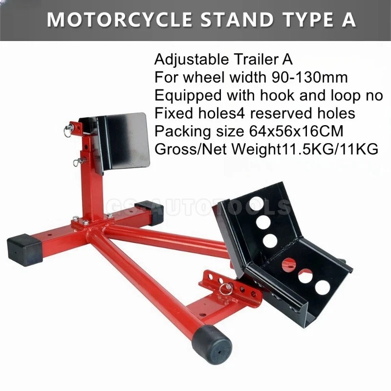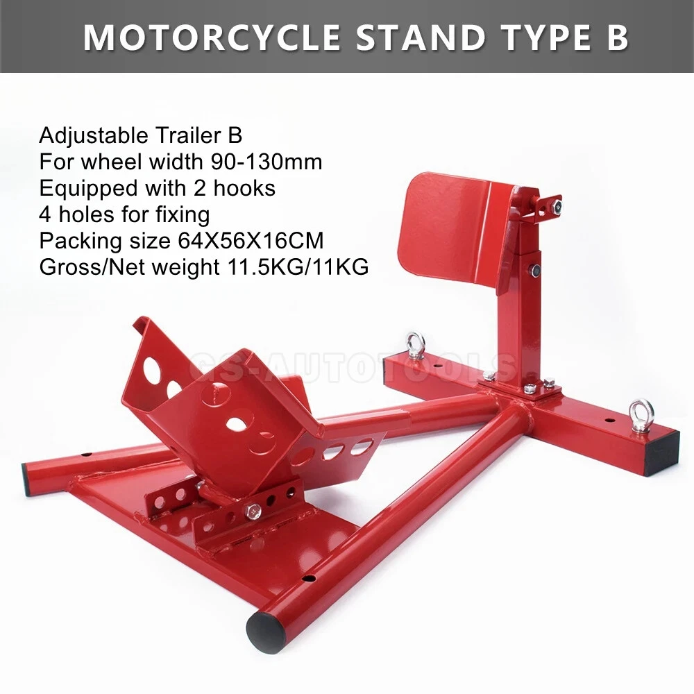 Motorcycle trailer rack limiter front wheel parking stationary bracket starter transport tire clamp pickup truck shipping racks Motorcycle trailer frame A models ② product color: black, red product material: Q235 steel product load: 680KG surface treatment: electrostatic spraying conditions: fixed use Package Size:64x48x16cm Weight:11.5kg Motorcycle trailer frame B model ②Product color: black Material:Q235 steelLoad:680KGSurface treatment:electrostatic sprayingUse condition:fixed usePacking size:64x48x16cmWeight:11.5kg