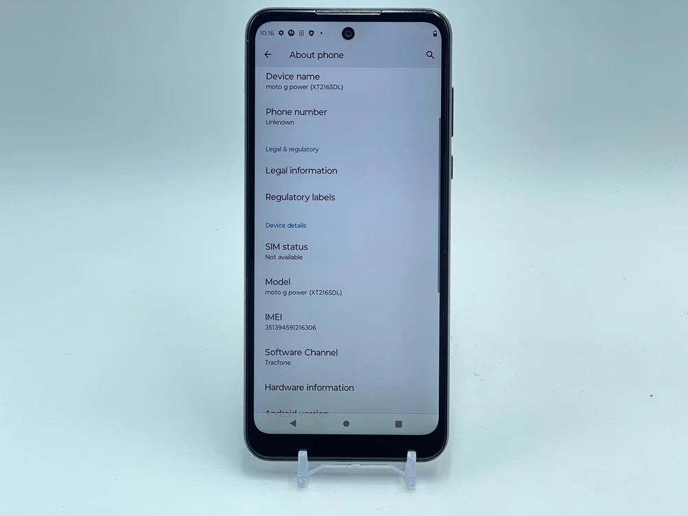 PAYMENT - Payment is due when item is ended. If payment is not received within 4 DAYS , the order will be automatically cancelled resulting in a strike on buyer's account. Buyers with 2 or more unpaid items will no longer be able to make offers or purchases from Warehouse Wireless. RETURNS - Returns are accepted within 60 days of purchase. We do not offer replacements or partial refunds. Original purchase price will be refunded after receipt of return. SHIPPING - USPS requires all electronics with lithium batteries be shipped using Parcel Select. Shipping times vary depending on location and are estimates only. Unfortunately, we are unable to offer USPS Priority, USPS Express, or FedEx Express shipping options. Motorola Moto G Power 64GB XT2165DL (Tracfone) Black Firmware: Android 12.0 - S3RQS32.20-42-10-6-10-5 THE PHOTOS ABOVE ARE REPRESENTATIVE OF THE DEVICE, NOT OF THE ACTUAL DEVICE. This item does not include a charger or any other accessories CARRIER - Tracfone IMEI/ESN - 351394591216306 Device is CLEAR FOR ACTIVATION - Please contact us right away if you do experience any problems with activation. DESCRIPTION - This item is in FAIR cosmetic condition. It reflects MODERATE to HEAVY USE and has MANY scratches and/or blemishes. Functional Condition Test Results: Passed Accelerometer Bluetooth Digitizer Earpiece Flashlight Front Camera Front Camera Quality Glass Condition Gyroscope Headset Port Headset-Left Headset-Right LCD Loud Speaker Microphone Power Button Proximity Sensor Rear Camera Rear Camera Quality Screen Rotation Vibration Video Microphone Volume Down Button Volume Up Button M-Network Connectivity M-Sim Reader 1 WiFi+GPS Failed Sim Reader Test