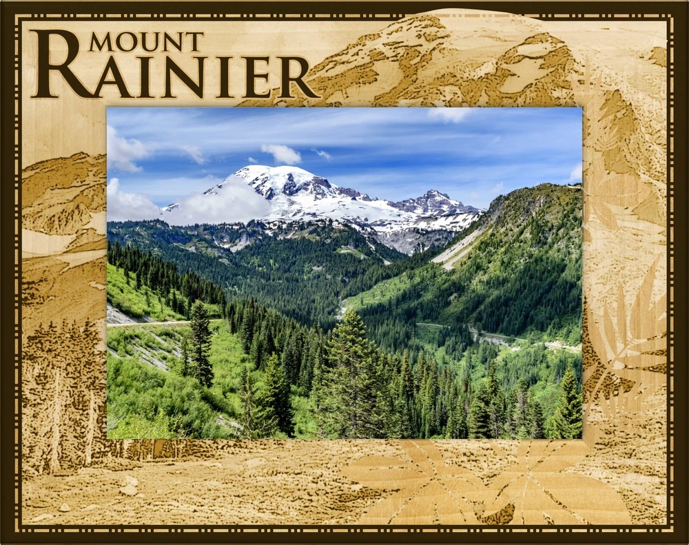 You are buying: Mount Rainier Mt. Scene Laser Engraved Wood Picture Frame Landscape (4 x 6) Picture Frame is made from Wood Picture Frame Measures 8.50 x 6.50 inches Picture Frame will hold a 4 x 6 Picture This item is Made in the USA Frames are new FREE SHIPPING to U.S. Customers Check out our ebay store where we have all the state magnets, plus lots of other items available. If you need larger quantities than what we have listed. Let us know and we will try to accommodate you.