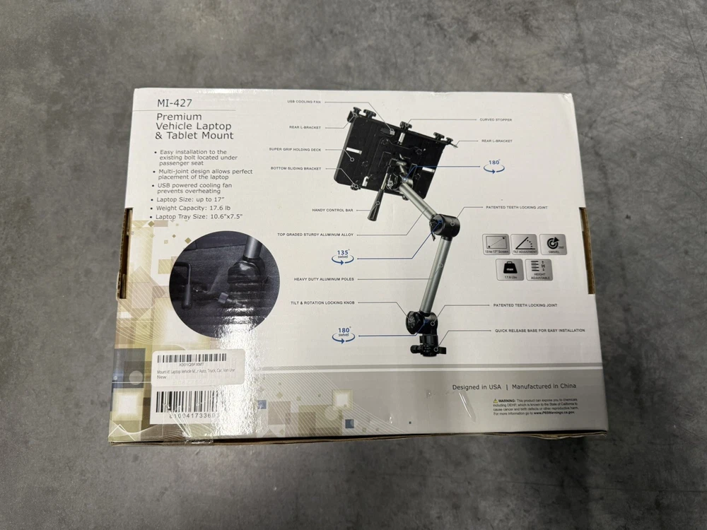 Color: Black Features: Bracket, Adjustable Type: Vehicle Mount gtin13: 810041733603 UPC: 810041733603 Maximum Screen Size Fitment: 17 in MPN: MI-427 Brand: Mount-It