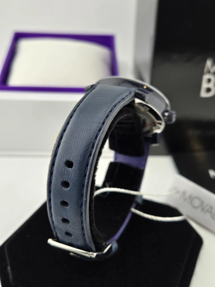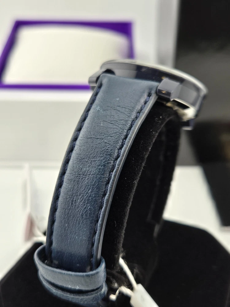 Movado Women's Bold Crystal Dial Leather Band Watch - 3600263 ($550 MSRP) With Original Box and Tags! This watch is a Shelf Pull from one of the Major Department Stores. Watch has micro scratches on the watch case/band, visible under direct light. The Movado Women's Bold Crystal Dial Leather Band Watch (Model 3600263) combines modern sophistication with a touch of playful elegance. Featuring a striking blue ion-plated stainless steel case, this watch exudes a refined yet bold aesthetic. The watch’s blue leather strap offers a luxurious contrast, and the fixed TR90 composite bezel enhances its sleek profile. The standout design element is the mesmerizing blue-to-lavender pave crystal dial, complemented by graceful purple hands and the signature Movado dot at the 12 o’clock position. With no traditional hour markers, the dial achieves a minimalist yet captivating look, making it the perfect accessory for both casual and formal occasions. Crafted with a quartz movement, this timepiece ensures precise timekeeping, while the scratch-resistant K1 crystal provides durability and clarity. The round 36mm case size strikes an ideal balance between statement-making presence and wearability, offering a comfortable fit for most wrists. The solid case back and pull/push crown design contribute to the watch’s sleek, refined construction. This timepiece is water-resistant up to 30 meters (100 feet), making it suitable for everyday wear and light splashes of water, adding practicality to its high-end appeal. A true testament to Movado's commitment to quality and design, the Women's Bold Crystal Dial Watch offers both style and functionality. Its simple yet elegant dial, paired with the smooth leather strap, makes it a timeless addition to any collection. Whether you’re dressing up for an evening out or adding a unique touch to your daily ensemble, this watch is sure to impress with its understated luxury and contemporary flair. Features Black ion-plated stainless steel case with a blue leather strap. Fixed TR90 composite bezel. Blue to lavender pave crystal dial with purple hands. No markers. The Movado dot appears at the 12 o'clock position. Dial Type: Analog. Quartz movement. Scratch resistant K1 crystal. Pull / push crown. Solid case back. Case diameter: 36 mm. Round case shape. Tang clasp. Water resistant at 30 meters / 100 feet. Functions: hour, minute. Fast and Free Shipping You're already purchasing the item. Why pay additional for shipping, especially slow shipping? We get your order shipped out within 1-business day and delivered to your doorstep as quickly as possible. Competitive Pricing With our dynamic pricing model, our prices are always competitive. Our prices are some of the lowest that you will find on the internet. Rest assured that you're getting a good deal when purchasing with us. 30-day Money Back Guarantee We are committed to making sure that you leave this transaction satisfied. If you're unhappy with the product for any reason, you may return it back for your money-back or a replacement within 30 days. No questions asked!