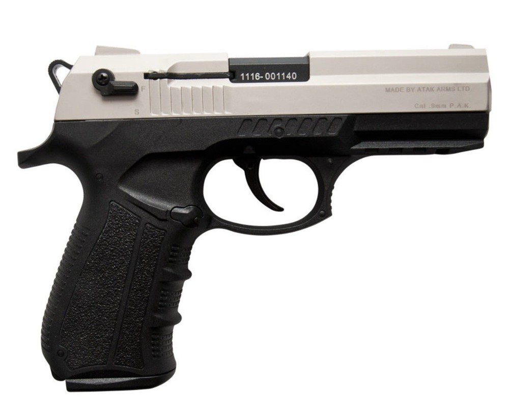 Features: Semi Automatic - Double Action Mechanism lock by hardened steel side button when out of cartridge Magazine release button at the side Hardened steel reinforced cock Hardened steel shell launcher and puller extractor Steel-reinforced zinc alloy mechanism (slide) Polymer frame Features Capacity: 18+1 Shots Weight: 2.16 lbs Height: 5.6 Inches Length: 8.1 Inches Finish: Satin Caliber: 9mm P.A.K. Includes: 18 Round Magazine, cleaning rod and hard-shell case The item description has the following disclaimer: “This replica gun contains the colored markings required by law, including a permanently attached orange plug.”