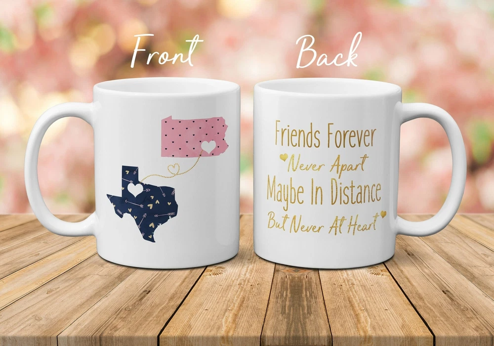 Moving Mug For Friend Best Friend Moving Mug Moving Away Mug Long Distance Mug Product Details.. This high quality 11oz. ceramic white mug has a premium hard coat that provides crisp and vibrant color reproduction sure to last for years. Perfect for all hot & cold beverages. The highest quality printing possible is used. It will never fade no matter how many times you wash it. Material: 100% Ceramic. Print both sides. Dishwasher and Microwave Safe. High Gloss + Premium White Finish. Printed in the U.S.A. Personalized & Custom. We support personalized and custom mug to add custom, when placing an order, you can add notes to the "order note" in shipping address section. Also you can contact us directly via message. Shipping Info. Ready to ship in 1 to 2 business days, All products are made-to-order and proudly printed in the United States. Shipped by USPS and DHL, You will receive your order in 5-7 days. Replace & Refund. All products are defective during shipping broken, chipped will be replaced free of charge. You are not satisfied with the product, we will refund 100% money to you. If any other issues arise, please do not hesitate to message, we would be more than happy to assist you.