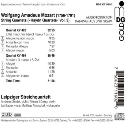 Further Details Title: Leipziger Streichquartett Condition: New Format: CD Genre: Classical Release Date: 2003 EAN: 0760623116020 Description: String Quartets K428 & K464 No Of Discs: 1 Type: Chamber Music Artist: Mozart Record Label: MDG Release Year: 2003 Missing Information? Please contact us if any details are missing and where possible we will add the information to our listing.