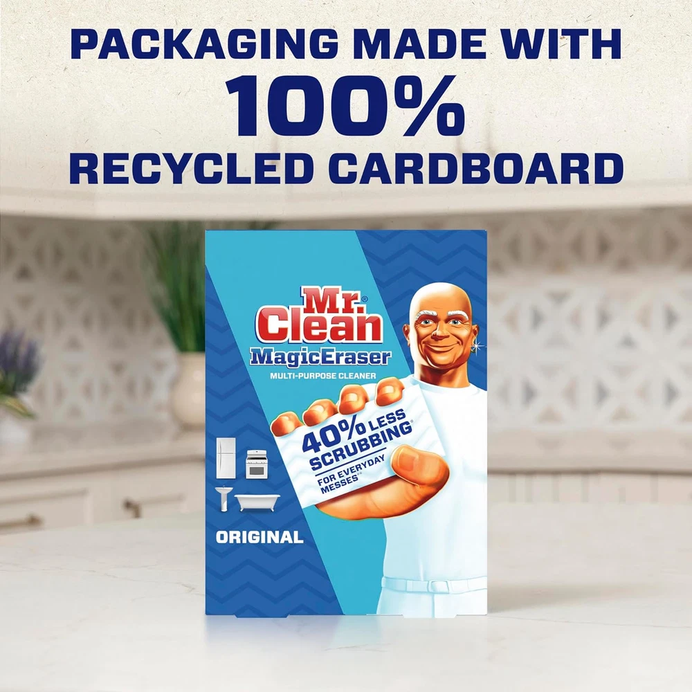 Store New Arrivals Add to Favorite View Feedback Contact Mr. Clean Magic Eraser Original Cleaning Pads, Multi Purpose Cleaner, Bathroom Cleaning Supplies, All Purpose Cleaner, White, 6 Count Description Item model number 79009 Item Form pads Scent Unscented Product Dimensions 2.32 x 5.43 x 7.48 inches; 0.16 ounces Country of Origin USA Material Feature Spray Manufacturer Procter & Gamble - Pampers Is Discontinued By Manufacturer No Specific Uses For Product Oven, Bathtub, Door Size 6 Count (Pack of 1) STRONGER CLEANING: Mr. Clean Magic Eraser is 3X stronger* for a superior clean *Cleaning performance vs. the leading all purpose bleach spray 2. VERSATILE USE: This all-purpose cleaner fights dirt all around the house. It works as a surface cleaner, wall cleaner, bathtub cleaner, oven door cleaner, and fights marks on light switches, doors & much more 3. POWERFUL CLEAN: The Mr. Clean Magic Eraser provides a powerful clean with water alone, no need for additional cleaning agents 4. VARIETY OF FORMS: Magic Erasers are also available in Ultra Thick, Ultra Foamy, Ultra Bath, and Extra durable forms, catering to a wide range of cleaning needs 5. SIMPLIFY CLEANING: With Mr. Clean Magic Eraser, you can say goodbye to the need for separate bathroom cleaner, shower cleaner, melamine sponge, all purpose cleaning spray, bathroom spray, brillo pads cleaning pads, bathtub cleaner, wall cleaner, oven cleaner, scrubbing powder, scrubbing cream, stovetop cleaner, glass-top cleaner Mr. Clean Magic Eraser Original scrubber is 2X Stronger* with DURAFOAM. Micro-scrubbers reach into the surface grooves, lifting away built up dirt and grime with water alone! Use it all around the house as a multi surface cleaner, wall cleaner, bathtub cleaner, oven door cleaner, or for erasing marks on light switches, doors and more! *Cleaning performance vs. the leading all-purpose bleach spray ABOUT US We offer the best prices around on high quality products. Our E-store includes media such as books, movies, music and games while offering electronics, toys, sporting apparel, clothing, tools, general home, garden items and more. SHIPPING We are always working hard to ensure your package arrives as soon as possible. Please understand that some factors like weather, high postal traffic, and the performance of shipping companies are outside of our control. We offer free shipping to the lower 48 states and ship within 2 business days of payment, usually sooner. We do not accept P.O. Boxes. Please provide a physical address. RETURNS We offer a 30-Day Return Policy on items which you are not completely satisfied with. You have the option for a full-refund or an exchange of the item. No returns are available on items shipped outside of the USA. PAYMENT We accept PayPal. CONTACT US This page content is yet to come Please ad us to your favorite seller and visit again later Thank You CUSTOMER SATISFACTION We try our very best to make sure every customer is completely satisfied. If there's a problem, message us! We're happy to help.