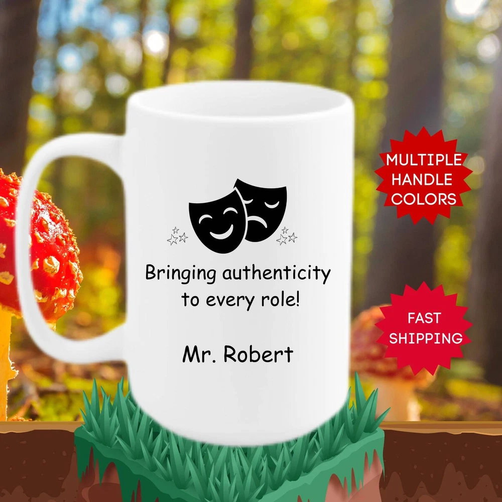 Mr Mrs Theater Teacher Gift Theatre Custom Mug Giftdrama Teacher Theater Acting Lover Actor Tumbler Actress Gift Gift For Her Or Him Product Details.. This high quality 11oz. ceramic white mug has a premium hard coat that provides crisp and vibrant color reproduction sure to last for years. Perfect for all hot & cold beverages. The highest quality printing possible is used. It will never fade no matter how many times you wash it. Material: 100% Ceramic. Print both sides. Dishwasher and Microwave Safe. High Gloss + Premium White Finish. Printed in the U.S.A. Personalized & Custom. We support personalized and custom mug to add custom, when placing an order, you can add notes to the "order note" in shipping address section. Also you can contact us directly via message. Shipping Info. Ready to ship in 1 to 2 business days, All products are made-to-order and proudly printed in the United States. Shipped by USPS and DHL, You will receive your order in 5-7 days. Replace & Refund. All products are defective during shipping broken, chipped will be replaced free of charge. You are not satisfied with the product, we will refund 100% money to you. If any other issues arise, please do not hesitate to message, we would be more than happy to assist you.