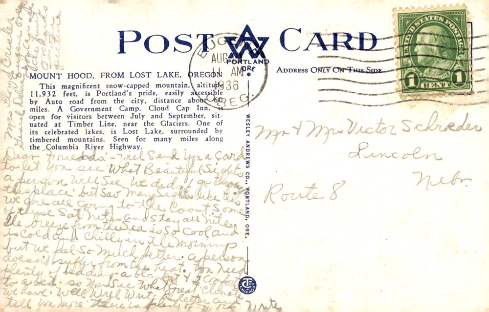 Mt. Hood, towering at 11,932 feet, is a pride of Portland, Oregon. Accessible by a scenic auto road, it offers Government Camp, Cloud Cap Inn, and stunning Lost Lake surrounded by timbered mountains.