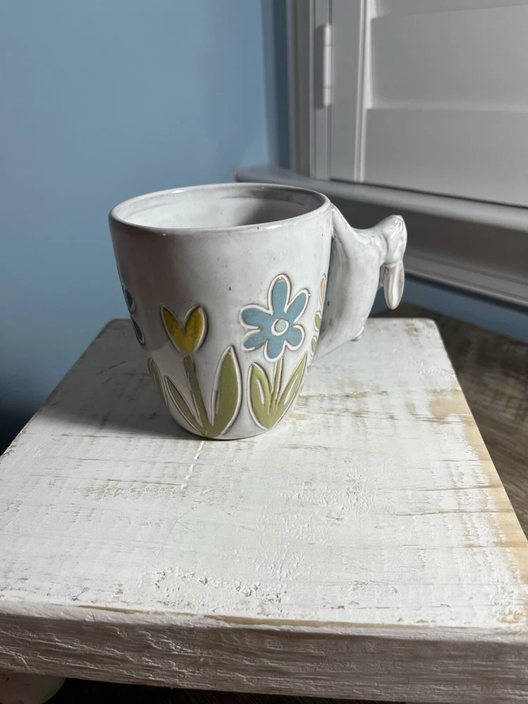 Mud Pie 4” ceramic Bunny handles with flowers coffee mug. Adorable for Spring.