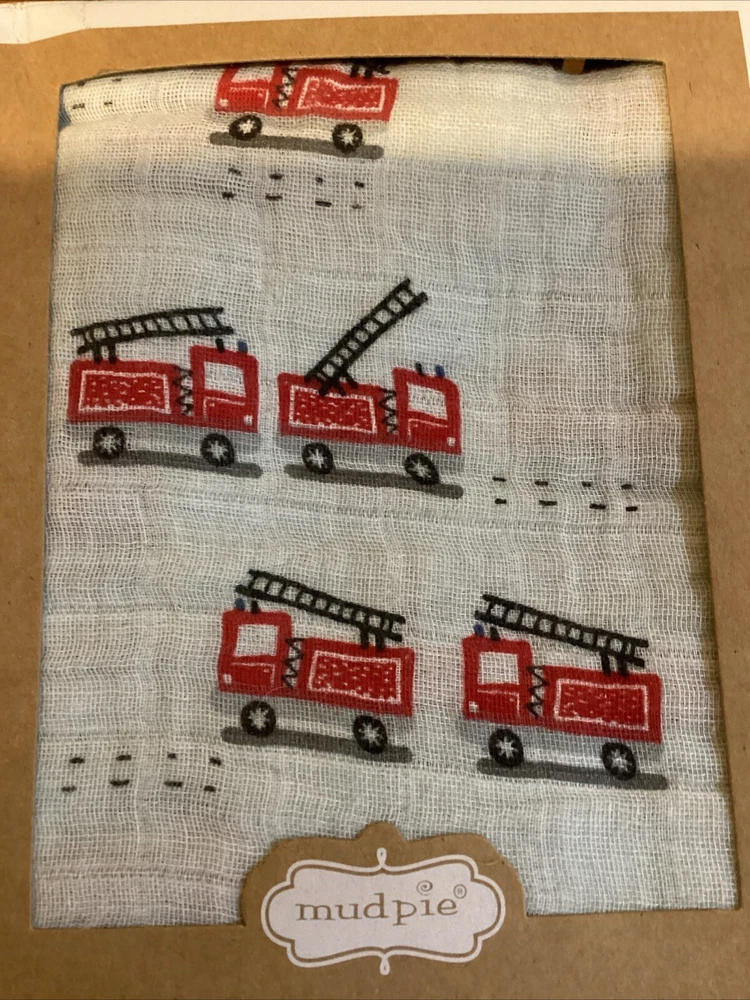 Keep your little boy cozy and stylish with this Mud Pie Fire Truck Cotton Muslin Swaddle Blanket. The blanket features a vibrant blue color with a fun fire truck theme, perfect for any little boy who loves emergency-themed toys. Made from 100% cotton, this blanket is breathable and soft, ensuring your baby's comfort throughout the day and night. Measuring 47" x 47", this blanket is the perfect size to snuggle up with your little one. Whether you're using it as a nap blanket or a regular blanket, this Mud Pie Fire Truck Cotton Muslin Swaddle Blanket is a must-have for any parent.