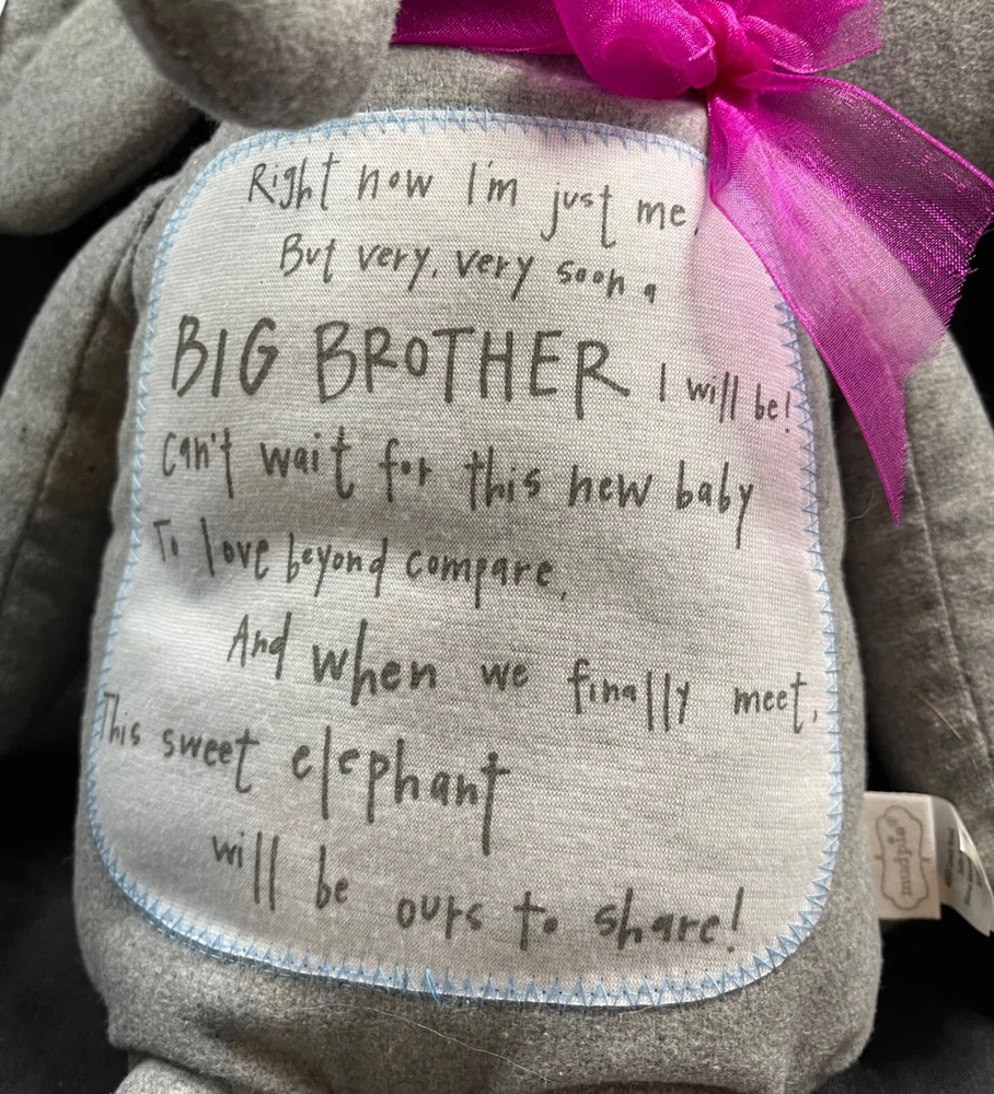 Mud Pie Elephant 20” Plush Big Brother To Be Gift NWT Promotes Sharing