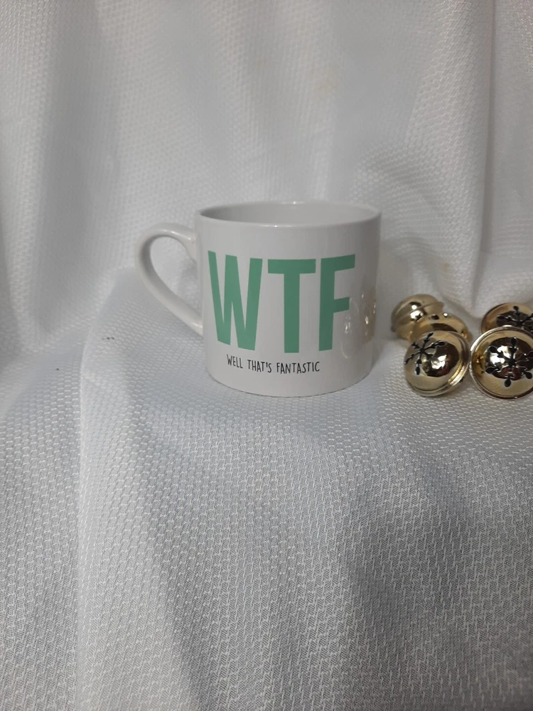 This classic white mug from Classic Solutions is perfect for all occasions. With a capacity of 11 fl oz, it is ideal for your favorite hot beverages. The mug features a novelty pattern with the words WTF "Well That's Fantastic" printed on it, making it a great addition to your collection. Crafted from high-quality ceramic, this mug is durable and microwave safe. It has a round shape and measures 3.5 inches in height and 4 inches in width, weighing 1.5 lbs. The mug is decorated and suitable for hot beverages, making it a great choice for family and friends, as well as for Christmas and other holidays.