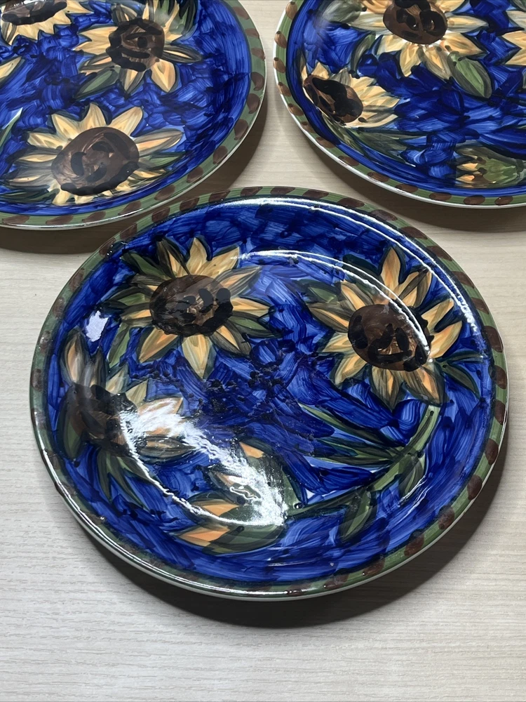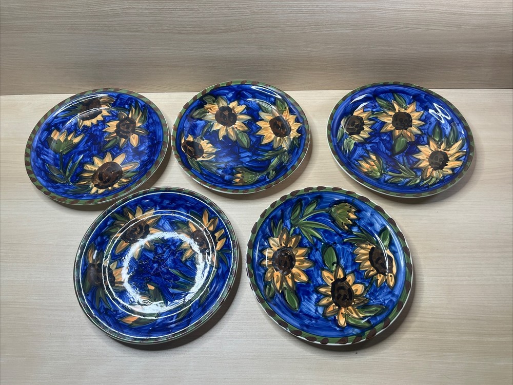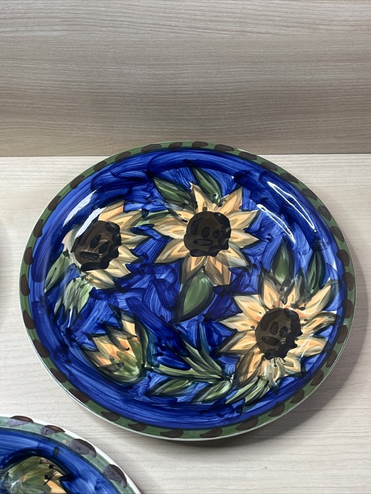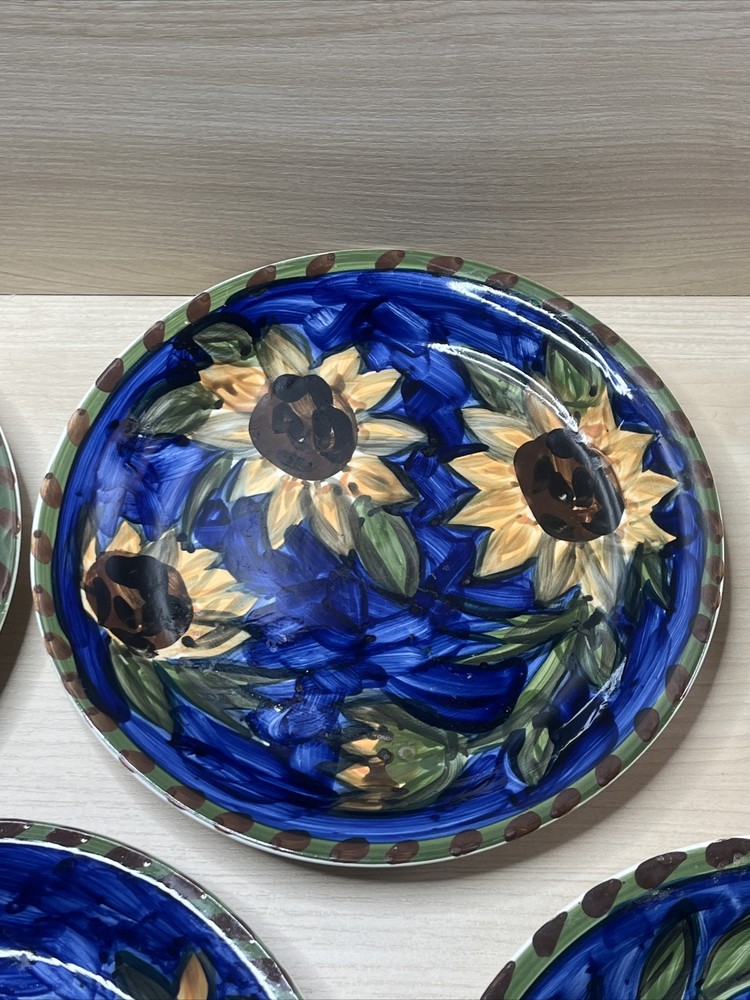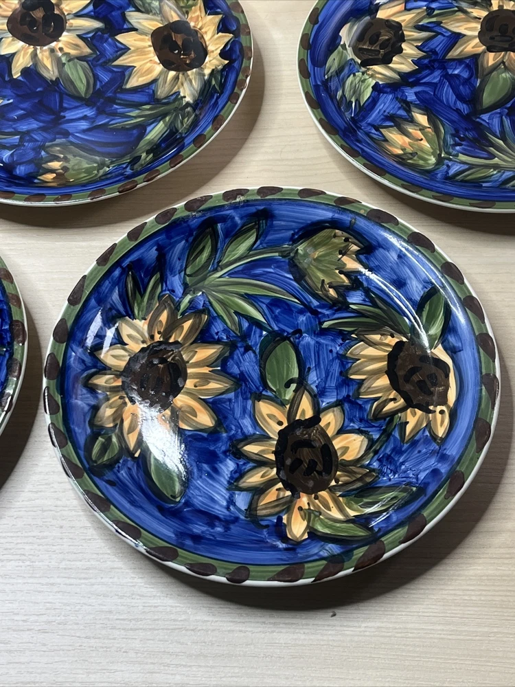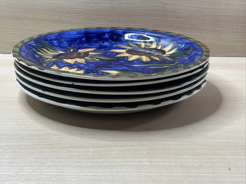 Mulberry Home Sunflowers Blue Green Dinner Plates Set of 5 10.75 Inch