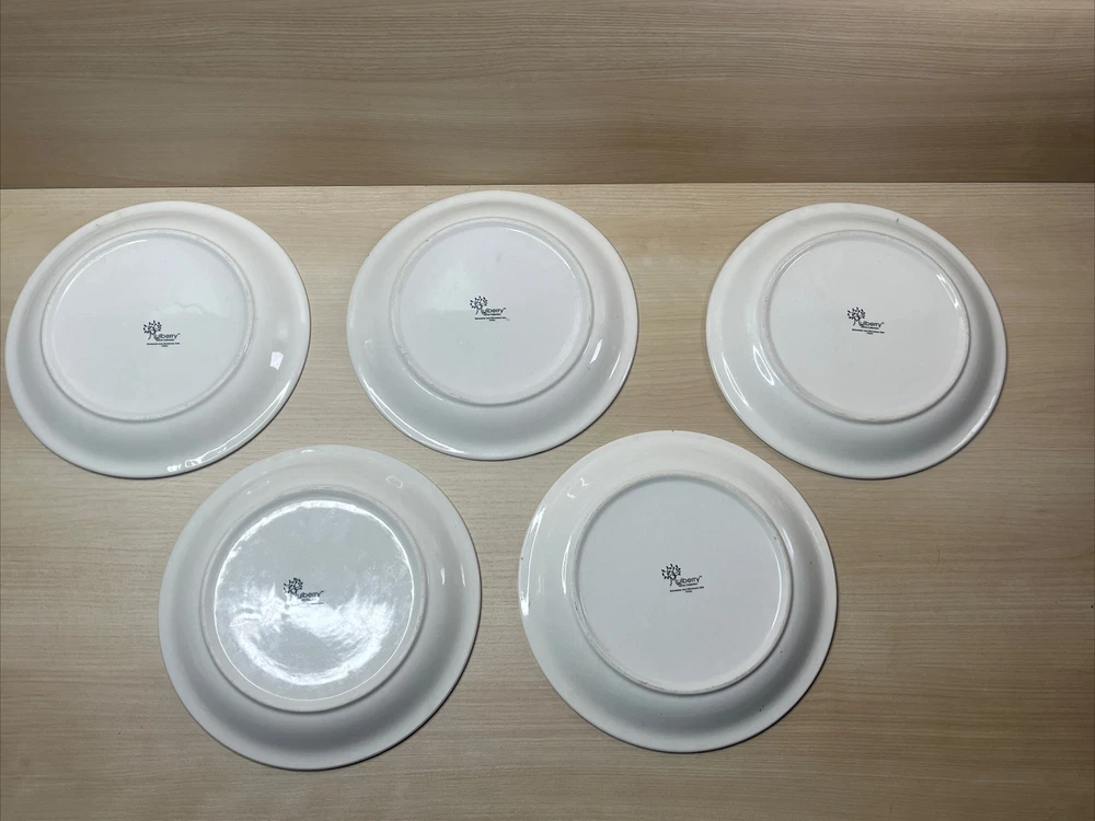 Seller Notes: “Preowned condition may show utensils marks from normal use check pictures carefully.” Shape: Round Color: Multicolor Material: Ceramic Original/Reproduction: Original Country/Region of Manufacture: China Brand: Mulberry Type: Dinner Plate Number of Items in Set: Five-Piece