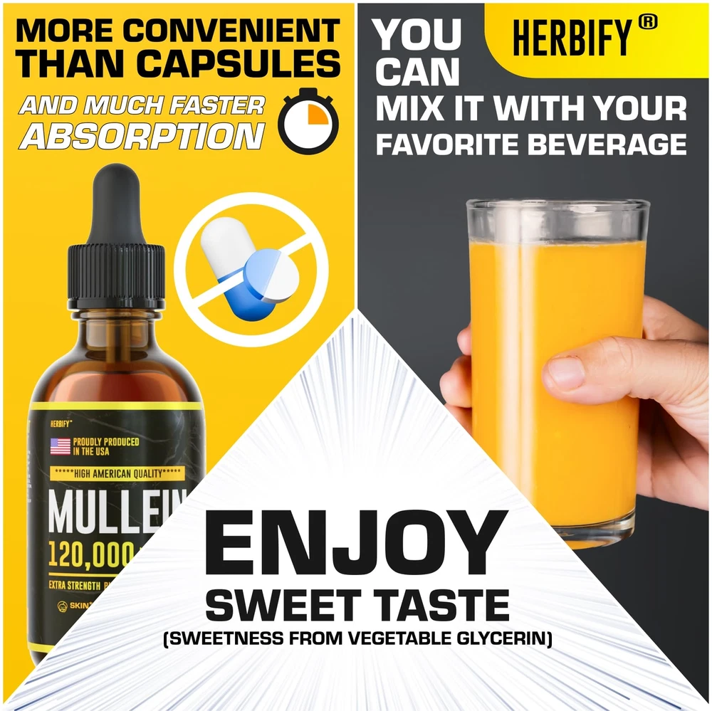 Pure mullein leaf and flower extract from is very close in effect to Echinacea. Our Mullein tincture supports lung cleansing. Absolutely essential product for smokers and conscious people. Mix it with water and support healthy breathing. Powerful lung complex blend provides significant improvement for your respiratory system. We use the finest leaves and flowers of Mullein herb. Enjoy the liquid with the highest concentration of Mullein. Taking Mullein in a liquid form is 3 times more effective than talking . It quickly works to improve your digestive system, immunity, and overall well-being. As well as long-lasting lung , throat, and bronchial cleansing is made in the USA with a lot of pride. We are based in Florida and use American ingredients as much as possible. We at have strict quality control, check our sources, and value Love & Trust for our brand above everything else. Unhappy with our product? Reach Out Directly to Make It Right! - If our product falls short of your expectations, please us directly for a prompt solution. Ensuring your satisfaction is our highest priority. With us, enjoy a seamless shopping experience where your and well-being are of utmost importance. Should the anticipated benefits not materialize, our hassle-free return policy, complementing ’s A-to-z , offers a straightforward money-back process.