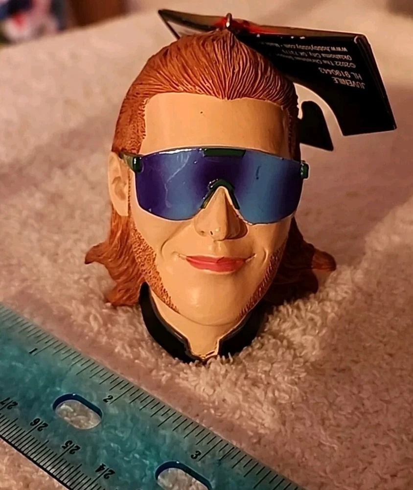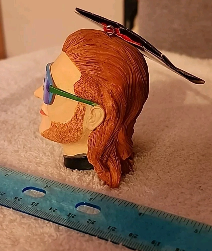 THE CHRISTMAS SHOPPE MULLET HEAD ORNAMENT SEE PHOTOS! UNIQUE ONE OF A KIND! Get ready to add some retro charm to your Christmas tree with this Mullet Man Head ornament from Christmas Shoppe. This ornament features a guy with a mullet pattern, sunglasses, and a beard, perfect for any 80s or 90s nostalgia enthusiast. Made of high-quality resin, this hanging ornament is sure to become a favorite in your collection. Whether you're a fan of antique collectibles or just looking for a unique holiday decoration, this Mullet Man Head ornament is a must-have. It's perfect for any occasion, especially Christmas, and is sure to bring a smile to your face every time you see it. Add it to your collection today and enjoy the beach-themed vibes it brings to your home.