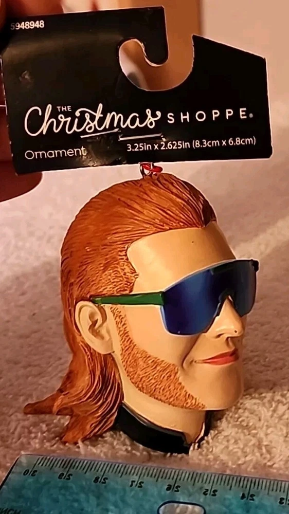 Mullet Man Head The Christmas Shoppe Ornament Sunglasses Beard 90s 80s