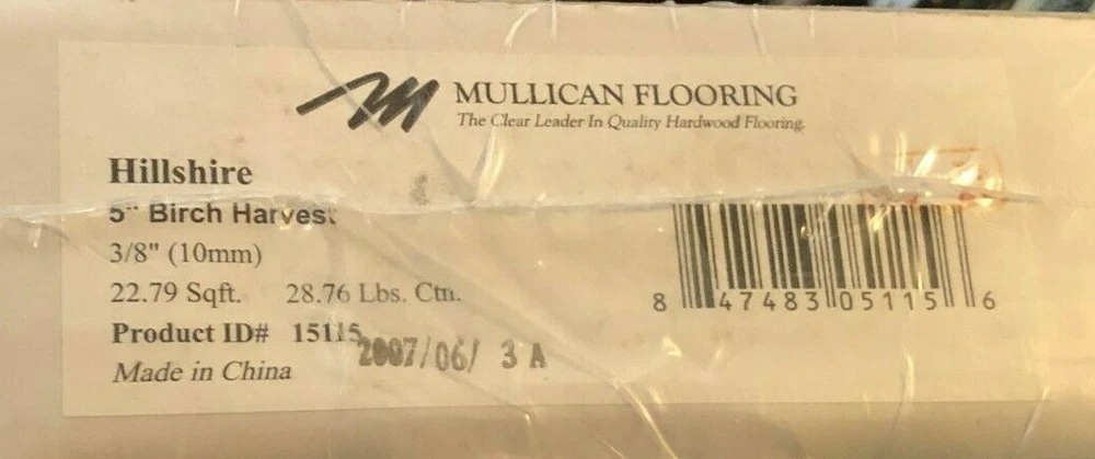 Mullican Flooring Hillshire Birch Harvest 5" 22.79 sq ft. 3/8" ID 15115 Engineered wood flooring. New in sealed box. It is left over from a room I did years ago. I have several boxes available. It has been long discontinued. You can also arrange your own shipping/delivery if desired. I will coordinate with your shipper. Smoke free, pet free home. Check out my other listings. I sell a variety of new and vintage items. Browse by see other items , or at my store Songbird’s treasure. Add me as a favorite seller or store. I am constantly adding new items. Smoke free, pet free home! BUY WITH CONFIDENCE! Same user I.D. since 2003. I strive to provide quality items and excellent customer service. Thanks for looking and come back again!