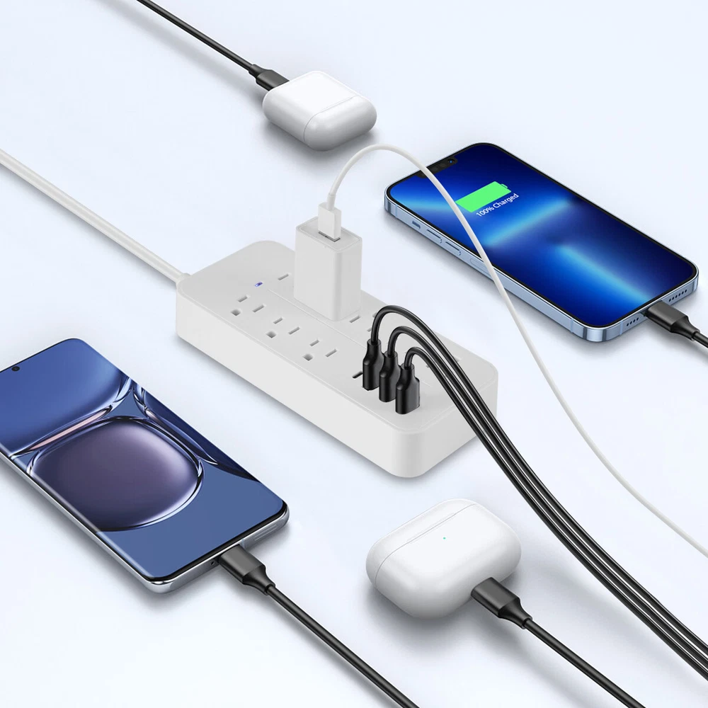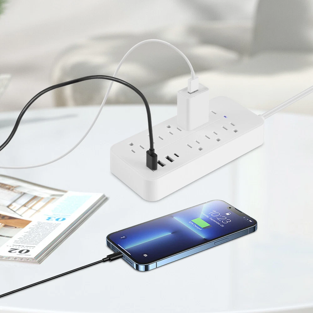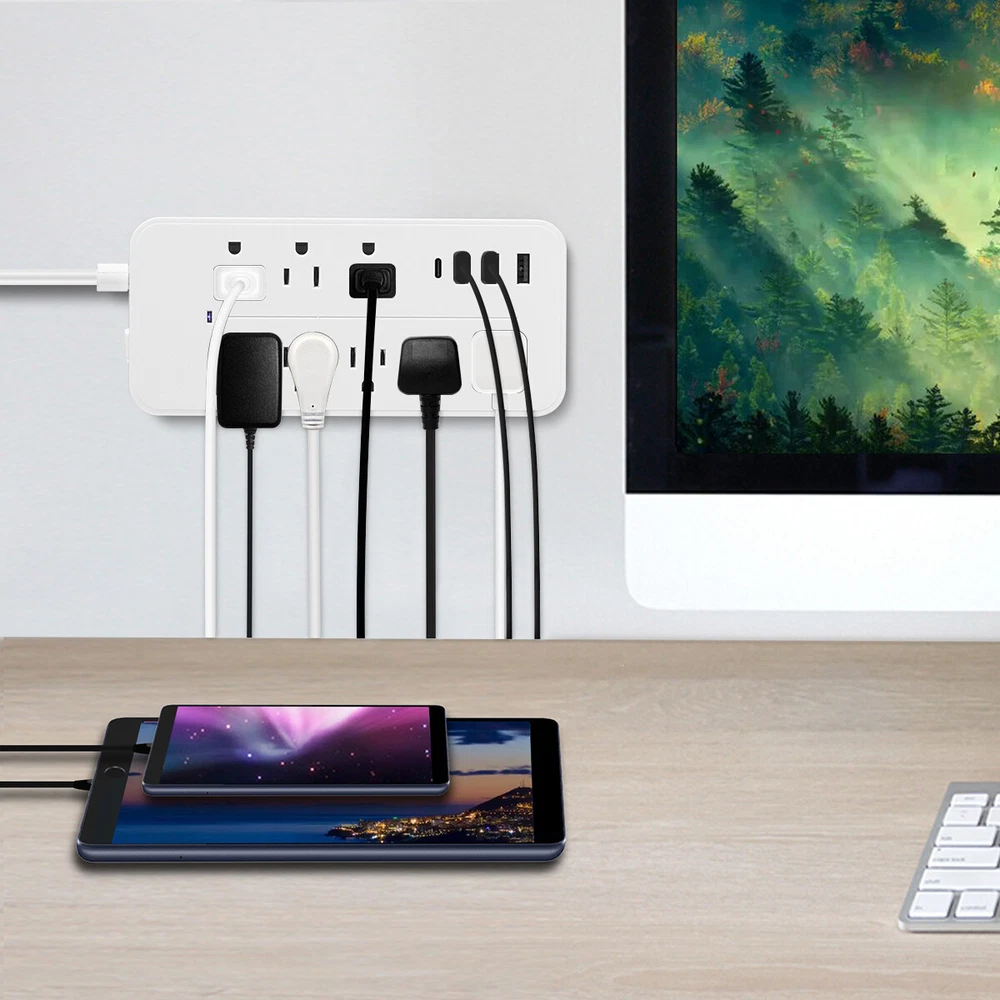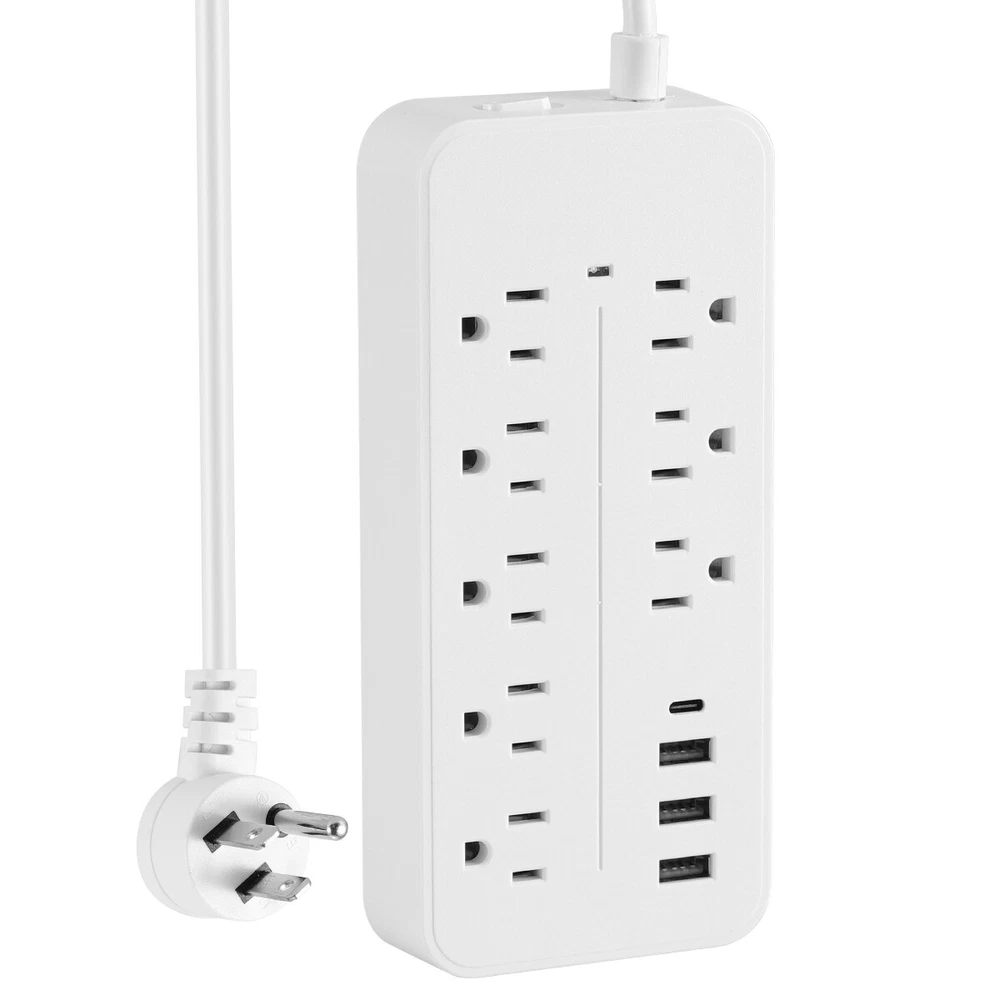 Multi Outlet Wall Mountable USB Surge Protector Power Strip with USB Ports Plugs Features: 12 in 1 Surge Protector Power Strip - This under desk power strip mountable has 8 AC outlets and 3 USB charging ports (10w total USB output) and can power up 10 devices simultaneously. This multi-outlet mountable surge protector is perfect for your garage, kitchen, bedroom, dorm and more. Max. power: 2000w (110v~10a). Qualcomm quick charge is not supported. Widely-Spaced Power Strip with USB - Larger space in-between can accommodate slightly larger power adapters (preferably < 1.75 in wide) without blocking adjacent outlets. Easily plug in your pc, monitor, printer, tv, android box, echo & more. 10 AC Surge Protector Outlets - The 3 level complementary Surge Protector Circuit which composed of TVS (transient voltage suppressor), MOV (metal oxide varistor), GDT (gas discharge tube), with minimum 2100 Joules energy absorbing capacity, could protect your devices much more quickly and reliably than other brand’s 1 level MOV Surge Protection Circuits. Flat Plug Power Strip - Low-profile flat plug fits easily in tight spaces, such as behind a sofa. 45° angled flat plug eliminates awkward cords from cluttering indoor décor and doesn’t block the bottom receptacle. the 3.7 foot extension cord is made of 14awg pure copper, heavy-duty, and has a better current carrying capacity. Specifications: Case material: ABS Conductor material: red copper Color: White Number of jacks: 4/8 +3USB (with switch) Specification: US standard Line length :1.1m Rated voltage: 110V Rated current: 10A Total rated power: 2000w USB output: 5V 2A Total USB output power: 10w Note: the board is equipped with a switch and an indicator light (after the switch is powered on, the indicator light will show red); USB port does not support fast charging Package Include: 1x Surge Protector Power Strip Contact us: Payment: Shipping: Warranty Return Contact us: We have always been trying to provide the best service and reliable products for every customer, however, accident may happen sometimes, please contact us to resolve any issue before leaving a negative feedback. Payment: 1. All payments must be prepaid before shipping. 2. We only accept payment via PayPal. Please kindly check if you can do the payment via PayPal before placing an order. Shipping: 1. Item will be shipped same business day if paid 4 pm EST 1 pm PDT (except weekends and holidays) and shipped from US. 2. Orders from the United States will all be shipped out via starnding shipping or economy shipping. The shipment usually takes 3-7 business days(Saturday and Sunday excluded), if you need the item urgently, please contact us for detail before purchase. Orders from overseas will be shipped via DHL Express, 3-5 business days. 3. Local pick up is not available. Warranty . The warranty shall not apply to the following circumstances: a) Damage caused by undue ware&tear, misuse, improper installation or operation, neglect, accidents. b) Damage caused by natural disaters, flood, fire, lightning or pollution. c) If item was opened, any parts removed or repaired by any unauthorized person. Return (1).We stand behind our items and offer 60 days warranty. All items are in brand new condition unless specified otherwise elsewhere in the description. (2).All returns - defective or otherwise - have to be preauthorized. Please contact us to get an authorization and returning address before sending the item back.If an item is returned because of an undeliverable shipping address, buyer agrees to pay the cost for re-shipment. (3).Please note that If the return/replacement is not a result of our mistake (not defective or wrong item), the buyer is responsible for return shipping, as well as a 20 percent restocking fee. (4).Replacement or refund will be made upon receipt of the returned item. If you do not want to wait for the replacement, you can just reorder one and then send the first one back for a refund.