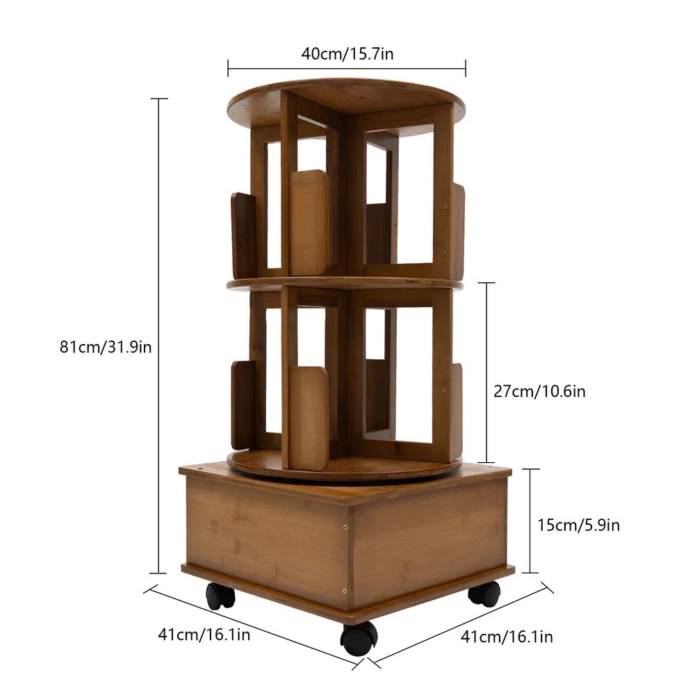 Specification Material: Bamboo Process: Painting Color: Tea Color Shape: Round Assembly Required: Yes Mount Type: Floor Standing Number of Tiers: 2 Number of Compartments: 8 Rotation: 360° Each Tier Bearing Capacity: 15kg/33.07 lbs Tier Height: 27cm/10.6in Base Height: 15cm/5.9in Top Diameter: 40cm/15.7in Overall Size(L*W*H): 41*41*81cm/16.1*16.1*31.9in Package Included 1 * Rotating End Table 1 Pair * Gloves All Accessories for Installation Multi Storage Table, Side Table with Rolling Wheels, Removable Swivel Bookcase Description Are you still worried about having too many books and too much clutter, with nowhere to put them? Multi-layer rotatab le rotating end table can be a n easy solution for you. Multi-layer and large-capacity product can be partitioned and planned, so you can say goodbye to a cluttered life. The design with wheels allows you to place it at will, providing you with higher freedom of use. Key Features Sturdy and Durable: It is made of natural bamboo with a painting process, which has a hard texture, wear resistance and durability, clear grain, dense structure, strong elasticity and toughness, but also is environmentally friendly . Handy Access: The fixable universal wheels on the bottom of the product allow you to push it to any safe position. In addition, the 360° rotating turntable provides you with the possibility of accessing items at multiple angles. Space-saving: With its cylindrical structure and vertical design, this product has a small footprint( 16.1*16.1inches ) and can be placed in all corners to create a tidy space. Strong Load-bearing Capacity: High-quality materials, quadrilateral base, and cylindrical stable structure make the product have up to 33 lbs load capacity per tier, providing more stability for your items to be placed. Storage Assistant: Double-layer structure, eight storage compartments and one drawer can provide you with more diversified storage options. The top panel also provides a separate storage space for your various storage needs . Exquisite Appearance: It is designed in a simple yet sophisticated style that complements a variety of interior decorating styles. Both modern minimalist and traditional Chinese styles can be greatly combined with it. At the same time, the bamboo material itself has a natural and warm aesthetic, so you can enjoy the visual pleasure when you use it. Easy to Clean: The smooth surface, simple construction and removable design of the product make it easy to quickly remove dirt and stains from the surface with a damp rag . Good Customer Service: We stand behind all our guests and look forward to assisting you with your purchase. It is our pleasure to answer your confusion and questions. The end of the story between us is not "we sell and you buy". Details Silent Stainless Steel Turntable: The turntable features a stainless stee l turntable an d steel bearings for stability and durability. Thickened Base: The base is designed with a cabinet (16.1*16.1*5.9in) for load-bearing stability, which is not easy to collapse and not easy to dump shaking. Curved Baffle: Semi-closed baffles make items less likely to fall. Rounded Corners: The rounded corners are carefully polished to care for your skin and avoid scratches during use. Application It can be suitable for any space, such as a living room, bedroom, or study office, as well as shopping malls, hotels, product displays, and so on. Specification Material: Bamboo Process: Painting Color: Tea Color Shape: Round Assembly Required: Yes Mount Type: Floor Standing Number of Tiers: 2 Number of Compartments: 8 Rotation: 360° Each Tier Bearing Capacity: 15kg/33.07 lbs Tier Height: 27cm/10.6in Base Height: 15cm/5.9in Top Diameter: 40cm/15.7in Overall Size(L*W*H): 41*41*81cm/16.1*16.1*31.9in Package Included 1 * Rotating End Table 1 Pair * Gloves All Accessories for Installation Notes Please avoid soaking this product in water and exposing it to sunlight. Please allow the slight color difference caused by the shooting light and the 1-3 cm error due to manual measurement, and make sure you do not mind before ordering. Payment Delivery details Terms of sales About us Contact us Payment We accept ebay payment 。 Fees such as import duties, taxes are not included in the item price or shipping costs. These charges are the buyer's responsibility. Delivery details Shipping: 2-9 working days to: USA Terms of sales We maintain high standards of excellence and strive for hundred percent customer satisfaction. Feedback is very important to us. We hope that you contact us immediately before you give neutral or negative feedback, so that we can address your concerns. It is impossible to address issues if we do not know about them! About us Your satis faction is our ultimate goal. We work hard to earn your trust and future business. Our certified technicians have tested each item before shipping. The unit comes with 1 year limited warranty on all manufacturing defects. a) If you receive a defective item, you may return it or ask for a discount. Please contact us within 14 days after you receive the package. b) What you returned must be intact and in its original packaging as re? u. Customer is responsible for shipping costs of the returned item. c) We will cover the cost of shipping back t with the shipping rate indicated in the registration page. We will send you a new unit or refund the full payment you paid. Thank you. Contact us Business Hour Business Hour: Monday To Friday: 8:30 AM to 5:00 PM (Beijing China time) Due to time zones, our reply to your questions may not be immediately. But within above working time, we will reply your email within 24 hours. If it's non-workdays, please kindly be patient and wait till Monday. Please contact us with ebay message. Please feel free to contact us if you have any questions. Monday To Friday: 8:30 AM to 5:00 PM (Beijing China time) Due to time zones, our reply to your questions may not be immediately. But within above working time, we will r