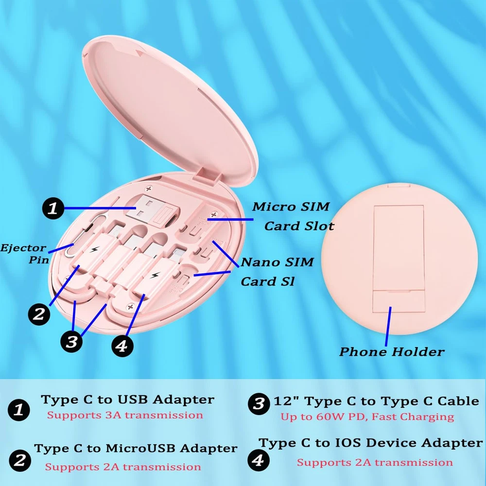 Store New Arrivals Add to Favorite View Feedback Contact Multi USB Charging Adapter Cable Kit, USB C to Ios Device Adapter Box, Conversion Set USB a & Type C to Male Micro/Type C/Ios Device, Data Transfer, Card Storage, Tray Eject Pin, Phone Holder (Pink) Description Item model number 35cb7825-44d0-4b75-a0fe-106951e91194 Color pink Country of Origin China Compatible Devices Laptop, Tablet, Cellular Phones Connector Type USB Type C, USB Type A Specific Uses For Product Monitor Package Dimensions 4.37 x 3.98 x 0.55 inches; 1.76 ounces 【Safe & Mult Charging】The USB adapters kit contains one type C to type C fast charging cable, which supports 60W high power. It also includes a USB A, a iOS Device, a micro USB converter adapter. The output current: type C is 3A and iOS Device/micro is 2A 【Convert You Want】You can use female USB A and Type C to the male Micro-USB /Type C/iOS Device, on the basis of these adapters, you can convert them you want. The most using is USB C to iOS Device Cable, USB to USB C Cable, etc. This adapter kit is suitable for phones, IPADs and other Android and IOS devices 【Multi-functional and Convenience】It is not just a USB Adapter converter, you can also use it charge your phone, transfer data(480Mbps), your SIM card, removed your phone SIM card. AND, it is a phone holder. At the same time, it is convenient to carry, just a box with the size of 3.2 x 0.4 inches (8.1 x 1.0 cm) 【Durable Material】The surface of Type C to Type C cable is thickened by 0.2MM, and TPE material made this adapter cable durable, so it looks durable. Besides, it had been Bending test for 10,000 times. Adapters are designed to be plugged and unplugged up to 10000 times 【Package Includes】One 12-inches USB Type-C cable and three USB adapters(USB Type-A, Micro-USB, iOS Device), two Nano SIM card slots, one micro SIM card slot(SIM card is not included) and 1 SIM card slot tray eject pin Product Description Azvegr: Multi charging cable, Convenient for your life Fast Charging, Convert You Want, Multi-functional Data cable storage box: Fast Charging This kit inclulds one Type C to Type C cable, which supprots 60W for fast charging. Data Transmission speed up to 480Mbps. usb adapter kit convert You Want You can use female USB A and Type C to the male Micro-USB /Type C/iOS device, on the basis of these adapters, you can convert them you want. The most using is USB C to iOS device Cable, USB to USB C Cable, etc. This adapter box is suitable for computers, phones, IPADs and other Android and IOS devices. USB charging cable Multi-functional ABOUT US We offer the best prices around on high quality products. Our E-store includes media such as books, movies, music and games while offering electronics, toys, sporting apparel, clothing, tools, general home, garden items and more. SHIPPING We are always working hard to ensure your package arrives as soon as possible. Please understand that some factors like weather, high postal traffic, and the performance of shipping companies are outside of our control. We offer free shipping to the lower 48 states and ship within 2 business days of payment, usually sooner. We do not accept P.O. Boxes. Please provide a physical address. RETURNS We offer a 30-Day Return Policy on items which you are not completely satisfied with. You have the option for a full-refund or an exchange of the item. No returns are available on items shipped outside of the USA. PAYMENT We accept PayPal. CONTACT US This page content is yet to come Please ad us to your favorite seller and visit again later Thank You CUSTOMER SATISFACTION We try our very best to make sure every customer is completely satisfied. If there's a problem, message us! We're happy to help.