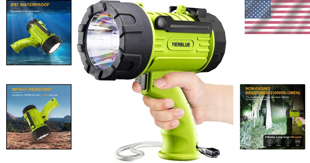 Multi-Function 1000,000 Lumen Flashlight with Power Bank & Floating Design ‹ › ‹ › ‹ › ‹ › ‹ › ‹ › ‹ › ‹ › ‹ › ‹ › Multi-Function 1000,000 Lumen Flashlight Its Power Bank & Floating Design: A Must-Have for Every Adventurer! Key Features: Extra Bright Heavy Duty Flashlight: Emits a staggering 1,000,000 lumen beam reaching up to 550 yards, outshining smaller models with ease. Longevity: Equipped with LEDs that boast a remarkable lifespan of 50,000 hours. Waterproof & Floating: IP67 rated, this flashlight can withstand submersion up to 3 feet and will float back to surface if dropped in water. Impact Resistant: Crafted from high-strength ABS with a silicone protective case, it endures drops from up to 10 feet. Long Lighting Duration: Loaded with a 10,000 mAh battery, enjoy up to 9 hours of illumination on lower settings, and 3 hours on higher settings. Power Bank Functionality: Equipped with an output port to charge your devices during an emergency. Rapid Recharging: Advanced USB-C technology allows for a full recharge in just 4 hours – compatible with any USB charging port. Versatile Functionality: Includes an adjustable stand for hands-free lighting and a removable red filter for hunting applications. Why You Should Own This Flashlight: Whether you’re camping under a starry sky or tackling emergency situations, the Multi-Function 1000,000 Lumen Flashlight is your ultimate lighting companion. Its unmatched brightness ensures safety and visibility even in the darkest of depictions. Durability meets functionality with this waterproof, impact-resistant spotlight that floats and charges your devices when you need them most. The adjustable stand provides hands-free convenience, making it the ideal work light for any task. With a lifetime guarantee and 24-hour online after-sale service, this is more than just a flashlight – it’s a trusted partner in all your adventures. Don’t wait, light up your life and enhance your safety today! Shipping Free & Fast Shipping - We offer free shipping to most of the USA with a normal delivery time of 3-7 days. However, due to the current situation, additional delivery time (up to 3 weeks) may be required for some items. Alternative Carriers - We may use alternative carriers (e.g. USPS, FedEx, UPS, etc.) to ensure your package arrives safely and on time. Due to the use of multiple carriers, we are unable to provide a tracking number automatically. Handling Time - Orders are processed and shipped within 1-2 business days of receiving cleared payment. Shipping Restrictions - Shipping to Alaska, Hawaii, Puerto Rico, Guam, and other US territories may incur shipping charges or delivery restrictions. Please contact us before ordering, or your order can be refunded/cancelled. State Restrictions - There may be restrictions based on your state of purchase. For example, certain items may not be shipped to California due to state regulations. Contact for Tracking Updates - If you require tracking updates or have any concerns about the delivery of your order, please feel free to contact us, and we will be happy to assist you. Return Please see our eBay Return Policy. Thank you. Payment We accept all major credit cards, PayPal, and Apple Pay for your convenience. Your payment information is secure and encrypted to ensure a safe and seamless transaction. Please complete your payment within 3 days of purchase to avoid any delays in shipping. Feedback Your feedback is extremely important to us. We strive to provide the best products and customer service possible. If you are satisfied with your purchase, please take a moment to leave us a positive review. If you have any concerns or issues with your order, please contact us before leaving negative feedback. We are committed to resolving any problems and ensuring your satisfaction. Contact Us If you have any questions or concerns, please feel free to reach out to our customer support team. You can contact us through the eBay messaging system. We are available Monday to Friday, 9:00 am to 5:00 pm EST, and we will do our best to respond to your inquiry within 24 hours. Thank you for supporting our small family business! UPC: Not Set Voltage: 3.7 volts Item Height: Not Set Item Length: Not Set Item Weight: 680 grams Item Width: Not Set Model: Not Set Lumens: 1000000 Number of LEDs: Not provided Unit Quantity: 2 Material: ABS Features: Batteries Included,Rechargeable,Waterproof,Impact Resistant,Hands-free,Detachable Filter Brand: Unbranded Type: Flashlight Lighting Technology: LED Power Source: Battery Operating Range: 550 yards MPN: Not Set Battery Technology: Lithium Polymer Number of Batteries: 2 Color: Fluorescent-Pro Country/Region of Manufacture: Not Set Operating Time: 3-10 Hours IP Rating: IP67 Number of Lights: 1-3 Unit Type: Not Set Personalize: Not Set
