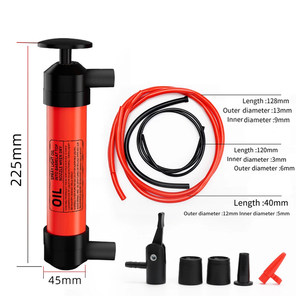 For Fuel Diesel Oil Kerosene Water Siphon Liquid Transfer Hand Pump Multi-Use FEATURES: SET INCLUDES 1 hand siphon transfer pump with 2 flexible discharge tubes and hose hooks. QUICK AND EASY Simply attach the hoses and necessary parts to the pump, insert one hose into the receptacle tank, insert the other into a bucket or any safe discharge container, and start pumping! AIR-TIGHT FLOW Forms a tight seal for quick and easy emptying of 1 to 5-gallon containers without the headaches. It helps form a continuous flow by not allowing air into the tube, making less work for you and more productivity. TRANSFER ALL LIQUIDS Easily such as kerosene, light oils, diesel, toluene, solvents, gas, water, and more. Don’t let gas sit in your snowblower over the winter, pump it out in seconds and store it for later or use it in your other motorized lawn care tools. MUST HAVE for the garage, bathroom, basement, yard, mechanics, emergencies, and more. Makes a great gift for Dad this Father’s Day or your favorite repairman. SPECIFICATION: Package Dimensions:225*45mm Lift Type:Mechanical