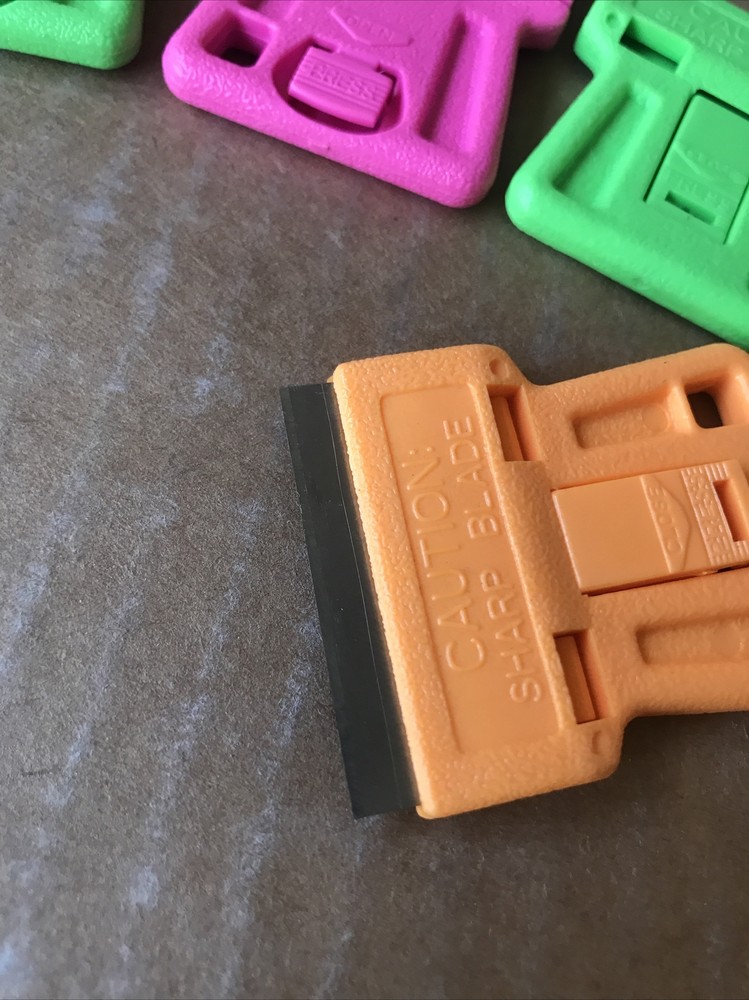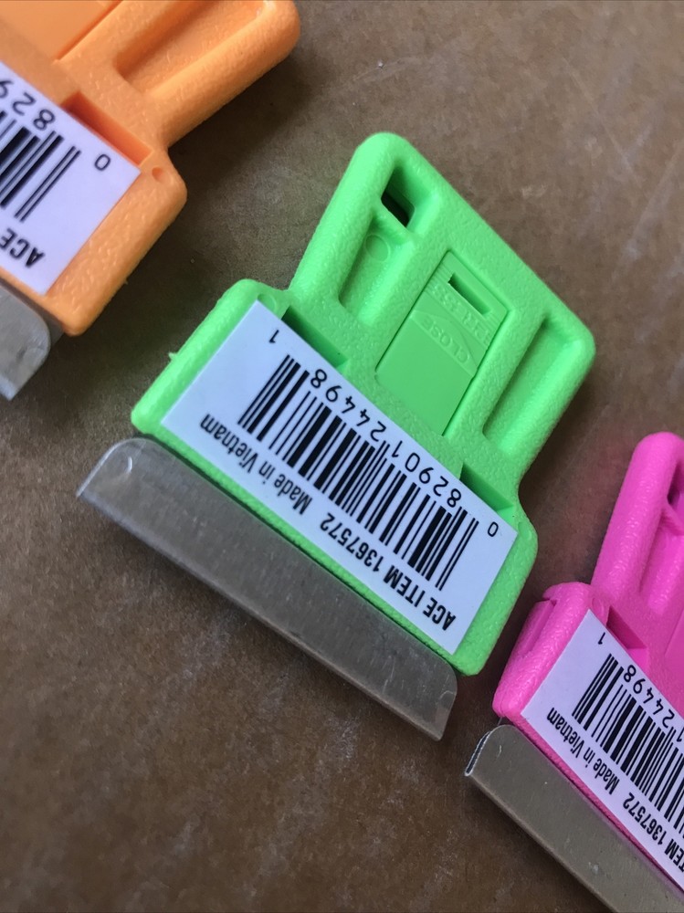 These scrapers are super handy! The steel edge is sharp and sturdy, making cleanup a breeze. The plastic handle is comfortable, and the bright colors make them easy to spot. Great for crafts, DIY projects, or scraping off stubborn residue. Love that it comes in a pack of six—perfect for sharing or keeping spares!
