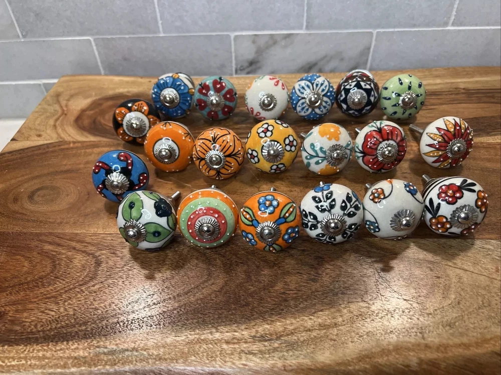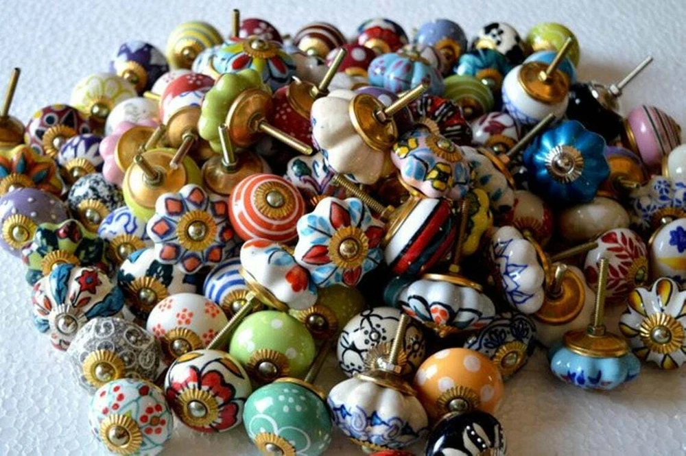 Suitable For: Bi-Fold Door, Room/Pass Door Style: Traditional Door Handing: Universal/Reversible MPN: Does not apply Item Diameter: 1.5 inch Finish: Polished Seller Notes: ““““"" Multi Color And assorted Design you will be received ""”””” Color: Multicolor Item Length: 2.6 inch Material: Ceramic Country/Region of Manufacture: India Brand: Unbranded
