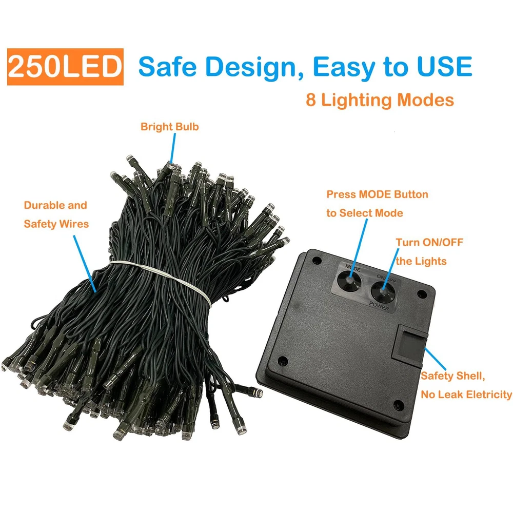 [Longer Working Time & Biger Solar Panel]: The Christmas battery of this solar powered outdoor lights were updated to 1800 mAh with high quality and Biger solar panel. No extra electric cost, solar powered only, and it can work 10-12 hours after fully charged (8 hours). This solar string lights with auto sensor control, Auto on at dark and Auto off at daytime. [Decoration & Application]: This Christmas outdoor string lights, Widely used in Birthday, Party, Holiday, Wedding Christmas and Celebration Perfectly. flexible and can be easily bended, 2900k-3200k cool white, updated more durable LED. [2 Switches & 8 Different Modes]: This Christmas starbright solar LED string lights have the On/Off button and mode button. You can select 8 different modes to satisfy your diverse needs by pressing the mode button. [ Waterproof & Easy to Use]: These Christmas twinkle lights outdoor waterproof, IP 65 waterproof performance, for indoor and outdoor, and resist all kind of weather, no matter rain or snow. Each 83.4 ft string with 6.6 ft connecting wire is long enough for wrapping around Christmas tree , or wherever you like to light up, Porch, Gardens, Lawn, Yard, Gate etc. [Guarantee & Service]: If you have any questions or concern, please feel free to contact us, we also welcome any inquires before purchase. We promise to reply to you within 24 hours.