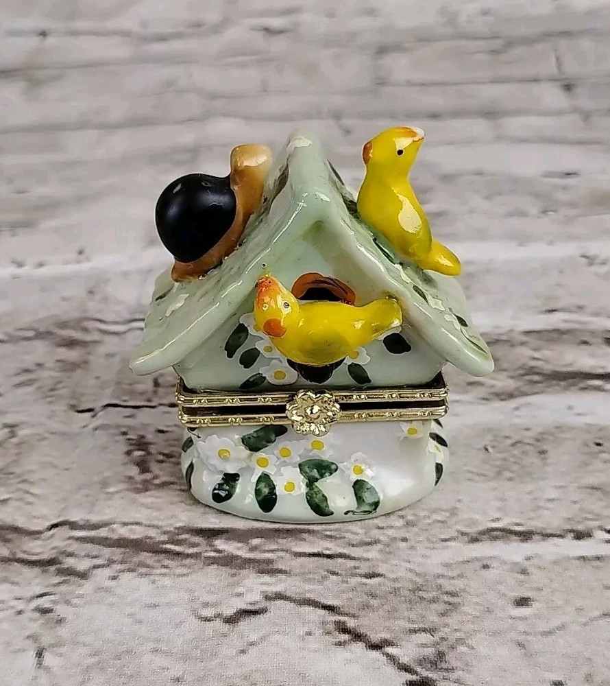 This beautiful collectible trinket box is a must-have for any bird enthusiast. The square shape and glossy finish of this small box make it a perfect addition to any decor. The yellow bird character adds a touch of whimsy to the multicolor porcelain design. This original piece is boxed and ready for display or storage. It is perfect for storing small items such as rings, bracelets, or other trinkets. The box is made of high-quality porcelain and is sure to last for years to come. Add this unique piece to your collection today!