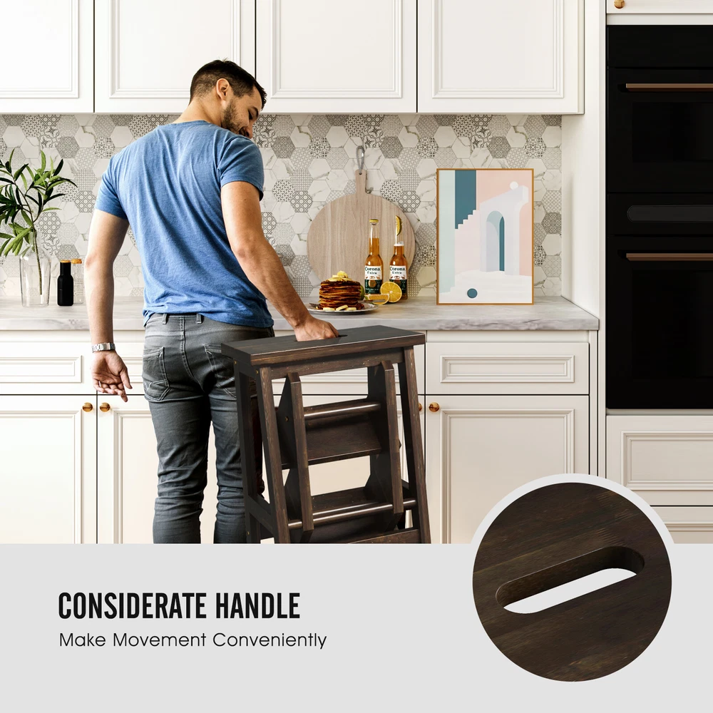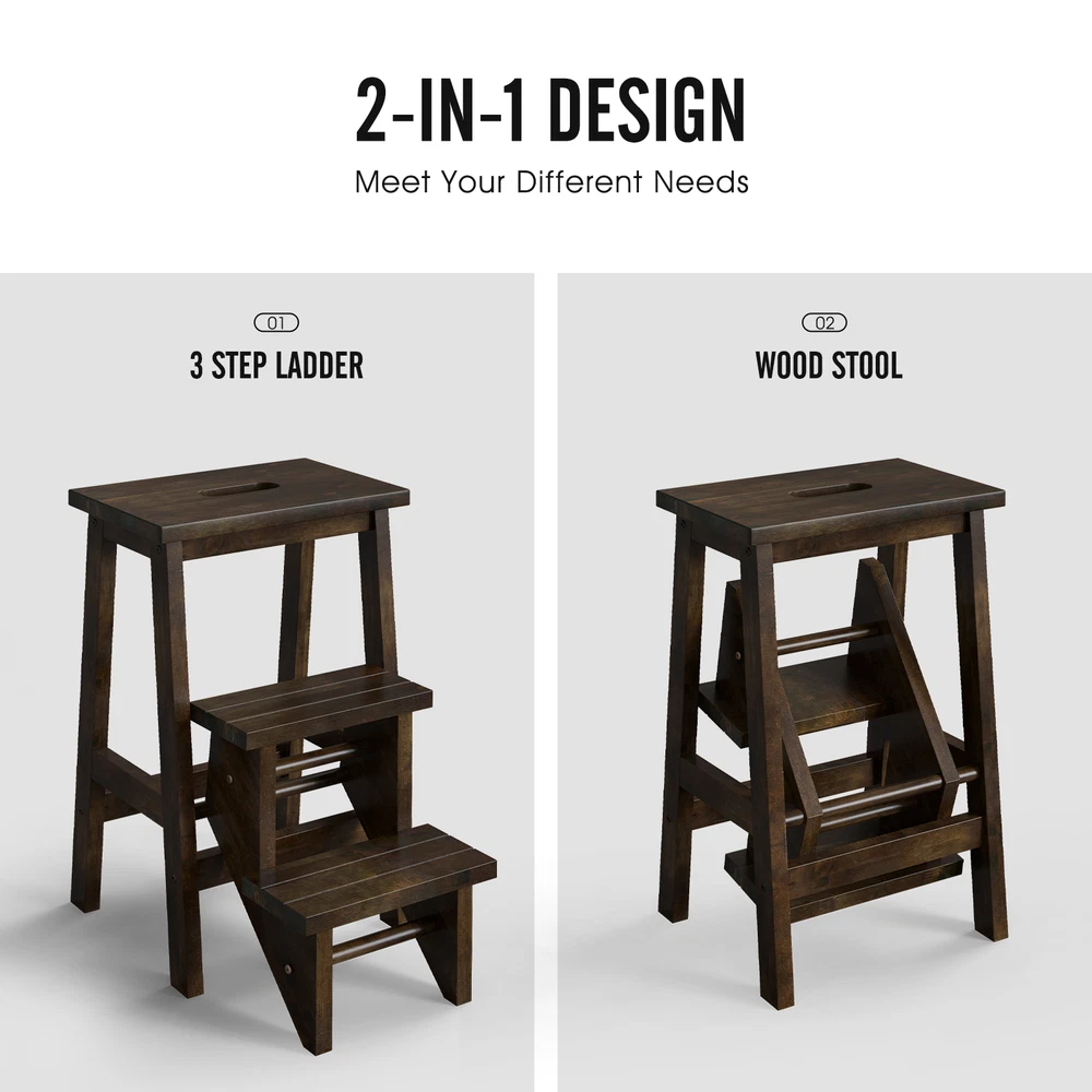 Color: Brown Material: Rubber Wood Overall Dimension of Step Ladder: 22” x 16” x 24” (L x W x H) Overall Dimension of Stool: 13” x 16” x 24” (L x W x H) Net Weight: 13 lbs Weight Capacity of Each Pedal: 200 lbs Package Includes: 1 x Step Stool 1 x Instruction ▌ PRODUCT DETAILS: Description: Whether you want to reach high places for cleaning, painting or other activities, this 3 step stool will be the perfect assistant for you! Designed with anti-slip and wide pedals, this step ladder provides safety and comfort while you are standing on it. Apart from serving as a stepladder, it also can be used as a normal stool and plant stand, which greatly meets your various demands. Likewise, the movement is very easy because of its built-in handle. What’s more, solid rubber wood stands the test of time. Features: Anti-slip surface for safe standing Brings heel-to-toe foot support with wide pedals Can be used as a step ladder or normal stool for different needs Solid rubber wood durability and stability Holds up to 200 lbs for each pedal Easy to reach high places for great convenience Considerate handle for easy movement Detailed instruction for easy installation Specifications: Color: Brown Material: Rubber Wood Overall Dimension of Step Ladder: 22” x 16” x 24” (L x W x H) Overall Dimension of Stool: 13” x 16” x 24” (L x W x H) Net Weight: 13 lbs Weight Capacity of Each Pedal: 200 lbs Package Includes: 1 x Step Stool 1 x Instruction ▌ Contact & Returns: If you have questions about purchases from us, please feel free to contact us through eBay's Message Center. Items should be returned in their original product packaging and all accessories in the original shipment must be included if you would return the item. ▌ Shippment: • Free Standard Shipping on all items. • All orders are shipped out via UPS, Fedex, USPS or LTL. • Transit time is 2-7 business days varying on customer’s location to fulfillment center. • Tracking numbers will be automatically updated once order is shipped. • We only ship to the Lower 48 States, no current shipping to Hawaii, Alaska, Puerto Rico, nor Guam. • We do not ship to FPO, APO or PO Boxes.