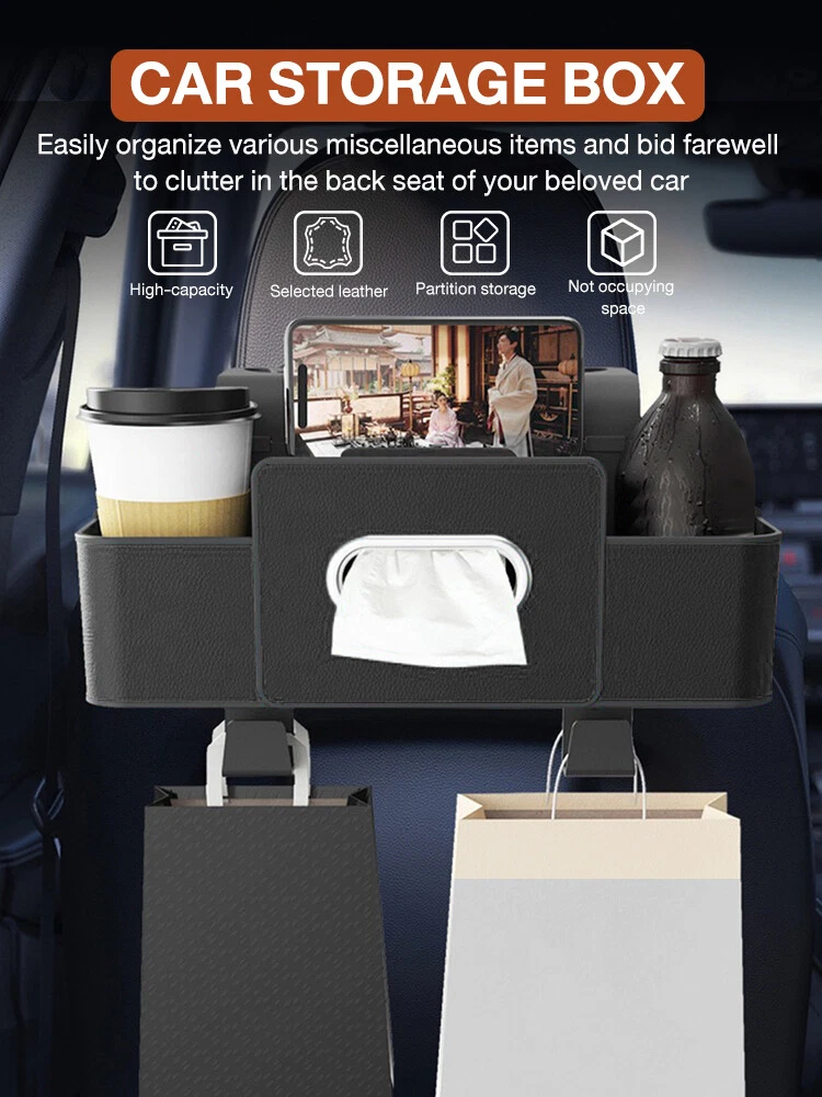 Features: 1. Super storage, convenient upgrade: set of multi-functional storage box and intelligent partition design in one, easy to organize all kinds of sundries, so that the backseat of the car goodbye to clutter, for your travel all-round quality, enjoy a comfortable journey. 2. Easy to install, stable and worry-free: closely fit the back of the seat, with the stabilizing buckle can easily handle the installation, does not take up extra space, but also can be fixed steadily without sliding, convenience pull full. 3. Excellent quality and durability: Selected ABS material with wear-resistant leather is carefully crafted, fearless of frequent daily use, anti-abrasion, anti-color fading, tear-resistant, and still as good as new after years of use. 4. Thoughtful design, easy to use: ad hoc built-in tissue bag storage space, suitable for ordinary tissue storage, while reserving space for cell phones, cups, snacks and other commonly used items, easy to use, always keep the car neat and tidy. 5. Wide range of adaptability, a car must have: whether it is a caravan, truck, car, SUV or convertible, all applicable, sufficient storage space to meet the needs of all types of models to store the essentials, easy to create a well-organized car environment. Specification: Product name: car seat back organizer Material: leather + ABS Features: hooks + storage + tissue box + bracket Installation: direct mounting with clips Product weight: about 340 grams Product size: about 32x5x10cm Packing list: 1 * Car seat back organizer On Jan 7, 2025 at 22:57:39 PST, seller added the following information: