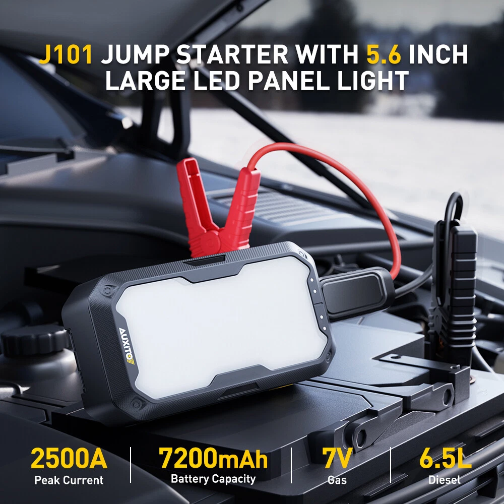 J101 Emergency Starting Power Supply Specifications: J101 Peak Current: 2,000A Battery Capacity: 7,200 mAh Suitable for: Li-ion battery emergency starting power supply (for 12V vehicles) for max 7L petrol vehicles + max 6.5L diesel vehicles with multi-mode oversized panel light (tent light) and smart clip. Functions. Multi-functional Emergency Start Power Supply: It can be used as a rechargeable battery or for lighting, and has the function of magnetic suction and hook. High-performance Emergency Start: *Peak current can reach 2,000A. *It is able to start most of 12V vehicles immediately (applicable to Max 7L Petrol Cars + Max 6.5L Diesel Cars). Multi-functional Emergency Start Power Supply Car Starting Portable Charging M J101 Emergency Starting Power Supply Specifications: J101 Peak Current: 2,000A Battery Capacity: 7,200 mAh Suitable for: Li-ion battery emergency starting power supply (for 12V vehicles) for max 7L petrol vehicles + max 6.5L diesel vehicles with multi-mode oversized panel light (tent light) and smart clip. Functions. Multi-functional Emergency Start Power Supply: It can be used as a rechargeable battery or for lighting, and has the function of magnetic suction and hook. High-performance Emergency Start: *Peak current can reach 2,000A. *It is able to start most of 12V vehicles immediately (applicable to Max 7L Petrol Cars + Max 6.5L Diesel Cars). *With a single charge capable of starting 20 to 30 times and superb battery life, it is capable of cyclic charging and discharging 1,000+ times. Features: [Latest QDSP Technology] *The starting ability is increased by 3 to 5 times for the same starter battery capacity. The current of our jump junction box equipped with the latest QDSP technology is 3 to 5 times higher than the old jump starter. *Enhanced low-temperature starting capability. The starting temperature is reduced by 50% by disruptive innovations to the battery/module structure, which leads to temperature equilibrium for your safety. [Powerful Aluminum-rich Lithium Technology] High power, superior safety and low-temperature resistance, etc. [Breakthrough Security Technology] *Unique design allows you to start your car easily and quickly even in extreme environments (-20?? to 60??). *Built-in 9 safety protection technologies for your safety (overcharge, over-current, short circuit, reverse polarity, low temperature, high temperature, over-voltage, overload, reverse charging). [Extra Large Panel Light & Portable Power Supply] *Wide range of usage scenarios. The 700 lumens (5W) large panel of the emergency starting power supply includes Three Modes ( high brightness always on white light/medium brightness always on white light/flashing white light/ red light SOS), and features a hook and a strong magnet suction function. *Extra long lighting time to meet your outdoor and nighttime lighting needs (the highest brightness of J101 can be Continuously Illuminated 4 Hours). *Served as a portable mobile power source to charge your digital products (such as cell phones, computers and watches, etc.). [Excellent Heat Dissipation & Easy to Operate ] Small and exquisite with an excellent heat dissipation system; LED large panel light makes it simple to operate for non-professionals. [Products Include ] 1 X J101 Start-up power supply 1 X Smart-Clip 1 X USB-Type A to USB-Type C charging cable 1 X Storage bag 1 X User manual and 24-month warranty card If you have any after-sale questions about the quick starter, please feel free to contact us. ??NOTES?? 1. If you don't use our product for a long time, please charge it every three months. 2. If there is any problem with the product, please contact us in time to deal with it. ABOUT US Multi-functional Emergency Start Power Supply Car Starting Portable Charging M J101 Emergency Starting Power Supply Specifications: J101 Peak Current: 2,000A Battery Capacity: 7,200 mAh Suitable for: Li-ion battery emergency starting power supply (for 12V vehicles) for max 7L petrol vehicles + max 6.5L diesel vehicles with multi-mode oversized panel light (tent light) and smart clip. Functions. Multi-functional Emergency Start Power Supply: It can be used as a rechargeable battery or for lighting, and has the function of magnetic suction and hook. High-performance Emergency Start: *Peak current can reach 2,000A. *It is able to start most of 12V vehicles immediately (applicable to Max 7L Petrol Cars + Max 6.5L Diesel Cars). *With a single charge capable of starting 20 to 30 times and superb battery life, it is capable of cyclic charging and discharging 1,000+ times. Features: [Latest QDSP Technology] *The starting ability is increased by 3 to 5 times for the same starter battery capacity. The current of our jump junction box equipped with the latest QDSP technology is 3 to 5 times higher than the old jump starter. *Enhanced low-temperature starting capability. The starting temperature is reduced by 50% by disruptive innovations to the battery/module structure, which leads to temperature equilibrium for your safety. [Powerful Aluminum-rich Lithium Technology] High power, superior safety and low-temperature resistance, etc. [Breakthrough Security Technology] *Unique design allows you to start your car easily and quickly even in extreme environments (-20?? to 60??). *Built-in 9 safety protection technologies for your safety (overcharge, over-current, short circuit, reverse polarity, low temperature, high temperature, over-voltage, overload, reverse charging). [Extra Large Panel Light & Portable Power Supply] *Wide range of usage scenarios. The 700 lumens (5W) large panel of the emergency starting power supply includes Three Modes ( high brightness always on white light/medium brightness always on white light/flashing white light/ red light SOS), and features a hook and a strong magnet suction function. *Extra long lighting time to meet your outdoor and nighttime lighting needs (the highest brightness of J101 can be Continuously Illuminated 4 Hours). *Served a