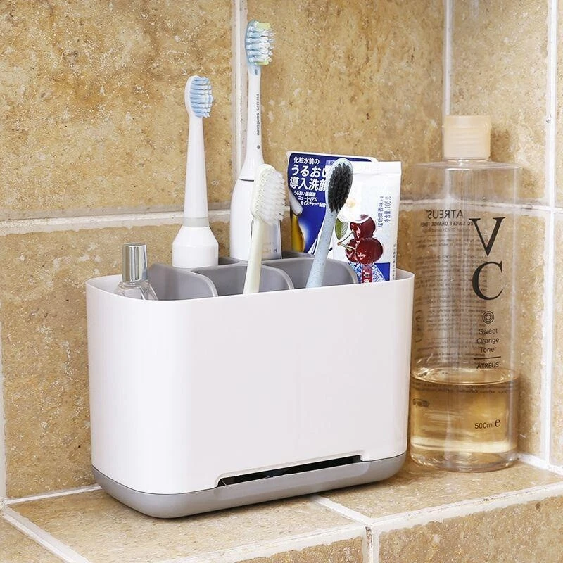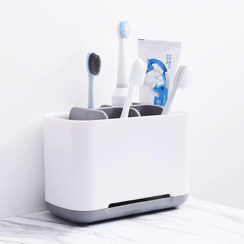 Features: 【Detachable & Easy Cleaning】 The inner divider and bottom of our bathroom toothbrush holder are both detachable, it is easy to clean. 【Anti-Slip Bottom Design】 Anti-Slip Bottom can prevent the toothbrush and the toothpaste holder from sliding or falling off even on smooth countertop. Product Size: S:9.5*9*11.8 cm L:19x9x11.8 cm Product material: ABS + PP