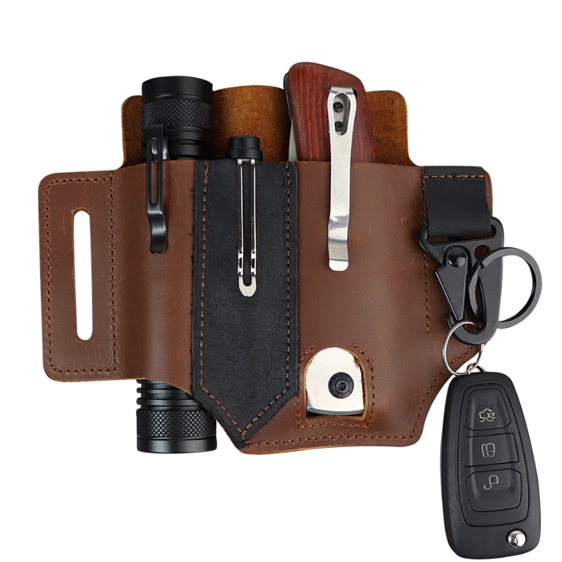 Features: Belt Loop sizing is for a standard1.5 inch wide belt. Multitool known to fit: Leatherman Free P2 or P4, Wave+, Signal, Rebar or Spyderco Para 3. Flashlight known to fit up to 0.91 inch diameter flashlight, a Fenix PD25 or Olight S2R Baton 2 or Baton Pro. Keypster fits normal sized key rings 100% handmade - hand cut, hand dyed and hand stitched. Quality leather - Full grain American tanned cow hides create a unique patina in time. Hand dyed - giving each and every item a unique appeal full of character. Tiger Thread - known for its strength and durability. Our multitool sheath is suitable for any outdoor activities, training, camping, climbing, fishing, hunting, traveling and so on. A perfect gift idea for Christmas, birthdays, Father’s day, or for any occasion. A great gift for your family, friends. Specifications: Color:Medium-brown Size:Flashlight Pocket-9.5cm*3.5cm;Pen Pocket-9.5 cm*2.5cm;Multitool Pocket-11cm*5.3cm Pattern: Solid Hardness: Medium to soft Closure Type:Slip-on Suitable for: Daily, outdoor Material: Leather Style:Vintage Package Content: 1PC * Sheath(multitools are not included) On Aug-30-21 at 01:40:01 PDT, seller added the following information: