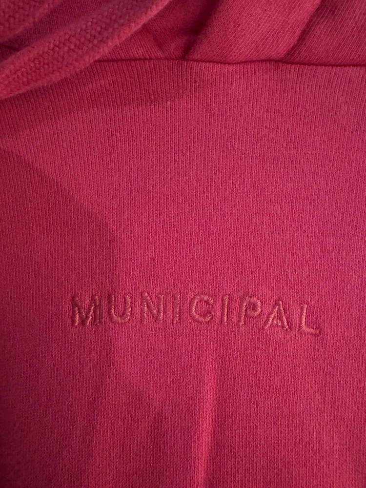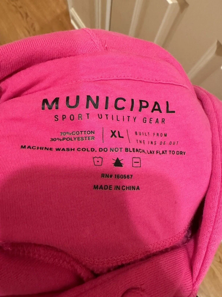 Municipal Sport Utility Gear Hooded Front Pocket Pink Cotton Blend Sweatshirt XL Pre-owned. No visible snags, tears or stains. See measurements and pictures.