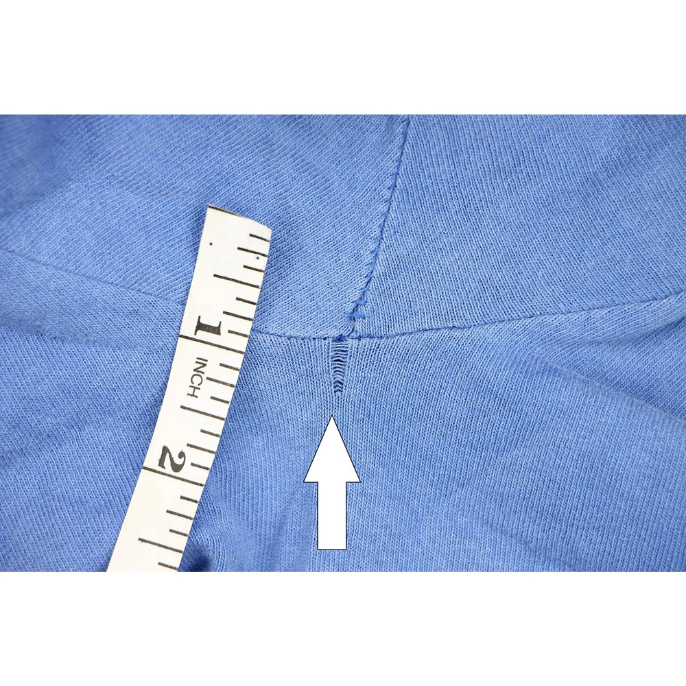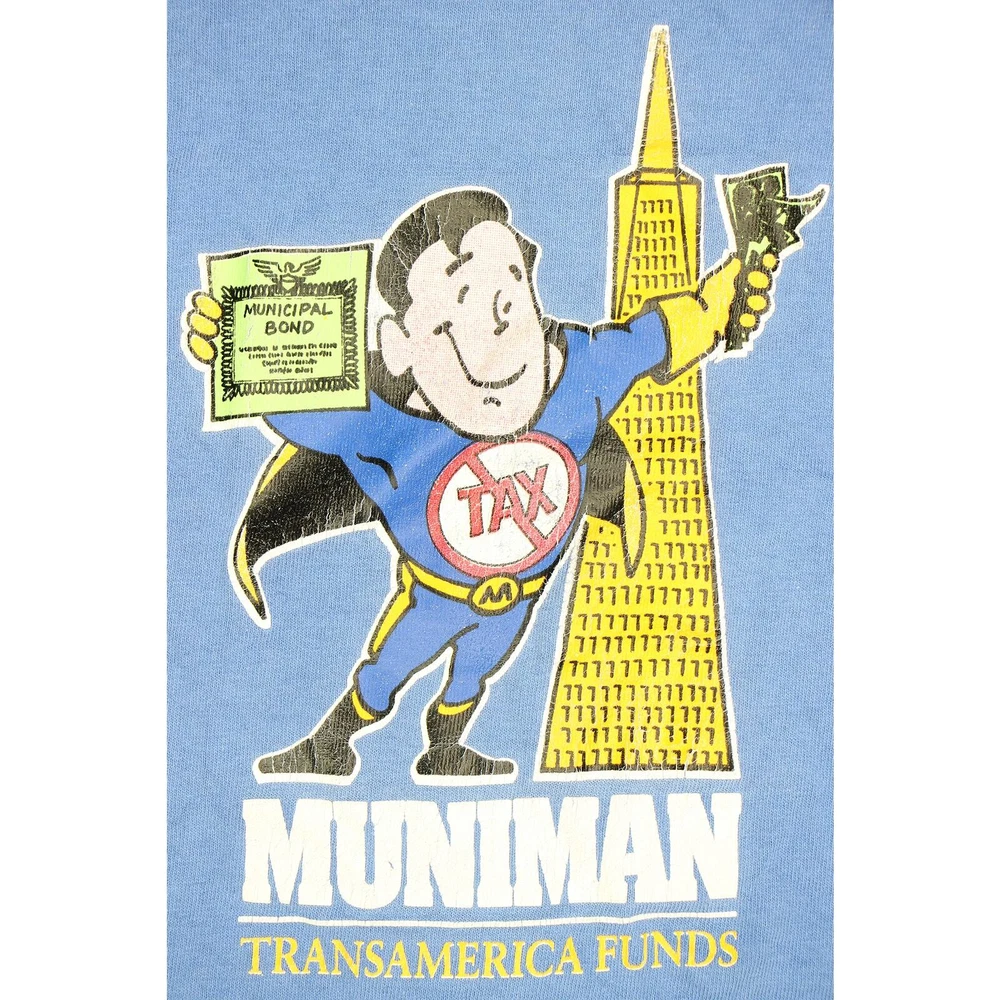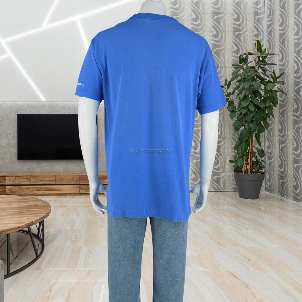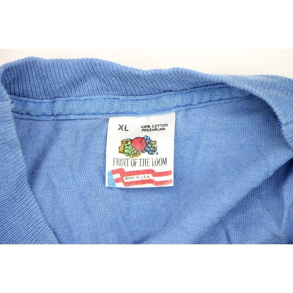 Unveil the essence of street art with our Muniman Transamerica Tee, merging vintage allure and modern casual comfort. This L-size tee captivates with its playful pop culture iconography, transforming everyday wear into wearable art. Its graphic storytelling and unique minimalist design promise a distinctive urban casual look, ready to weave narrative threads into your wardrobe. Capture these moods: urban simplicity, eclectic art, casual narratives, unique flair, everyday artistry. Material:100% cotton made in USA color: faded sky blue single stitch at sleeves and bottom hem condition: 3 pin sized holes, hole on one of the armpits, the print has cracks size on tag: XL fits like: L mannequin is 6' 2" and a size medium length (from the front on either side of the collar down to the bottom edge): 30 armpit to armpit: 22 all measurements are in inches and taken with the garment laying flat any major defect will be mentioned and/or photographed 13795