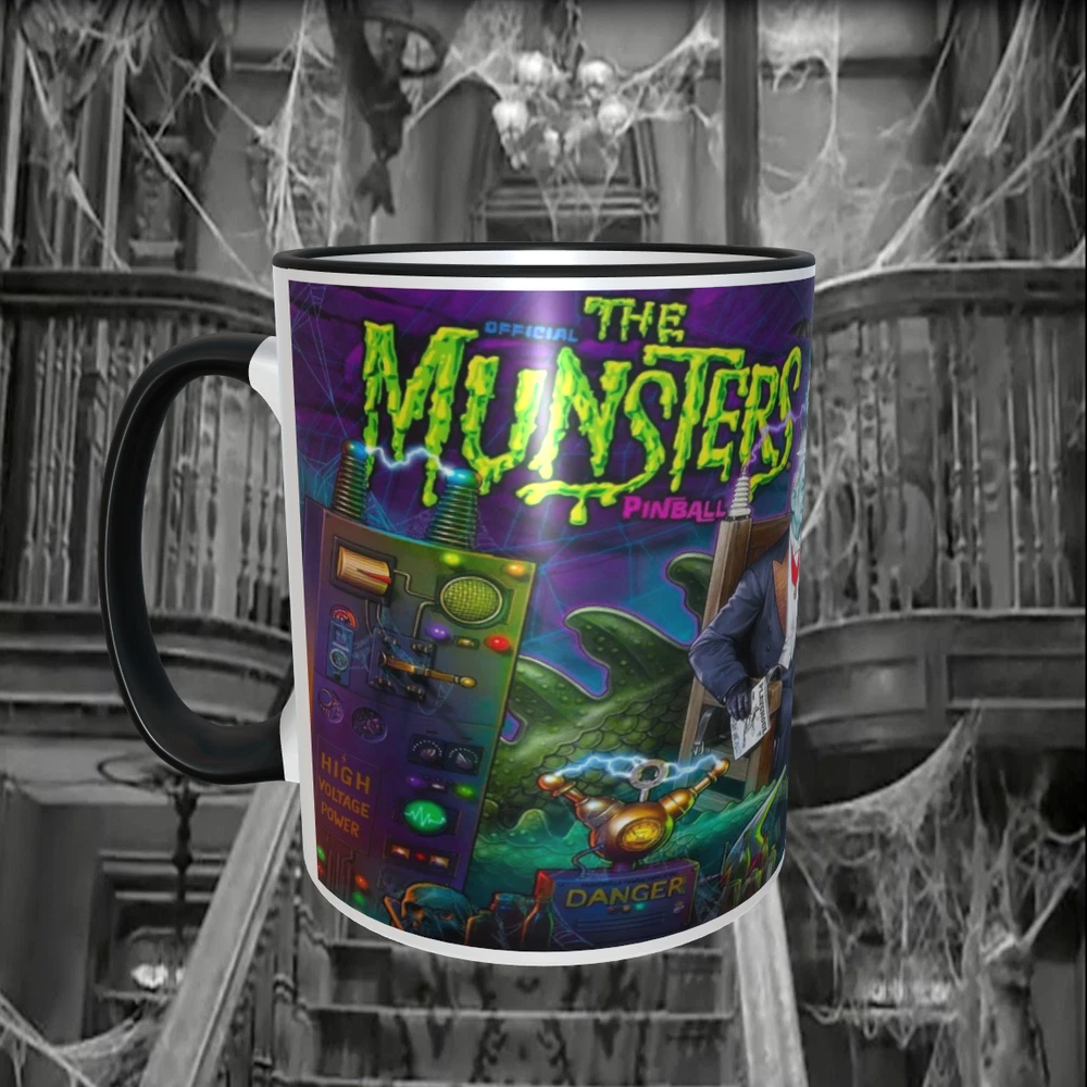 Munsters Pinball Marquee11oz Ceramic Coffee Mug NEW! Dishwasher safe Shipped with USPS Parcel Select Ground.