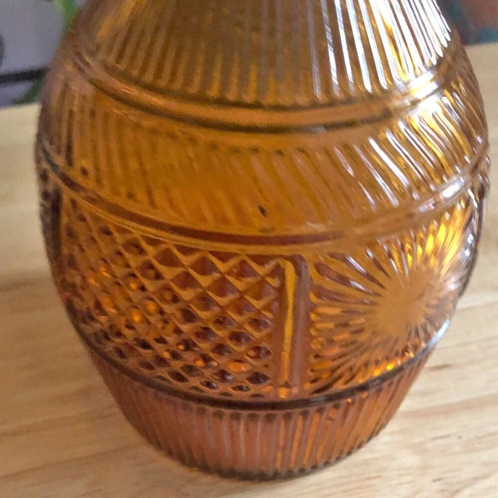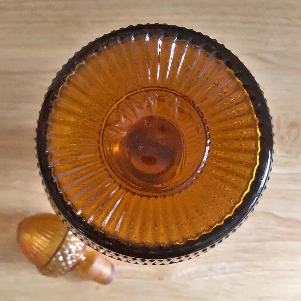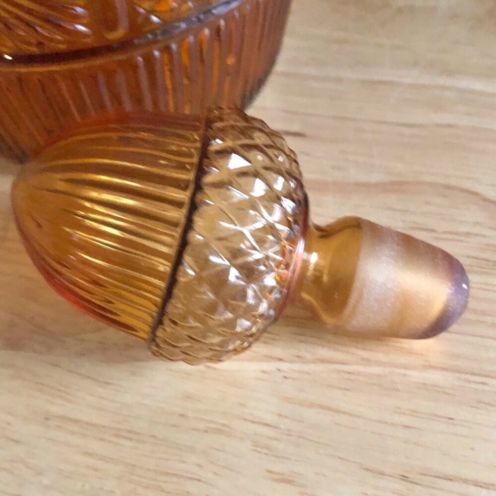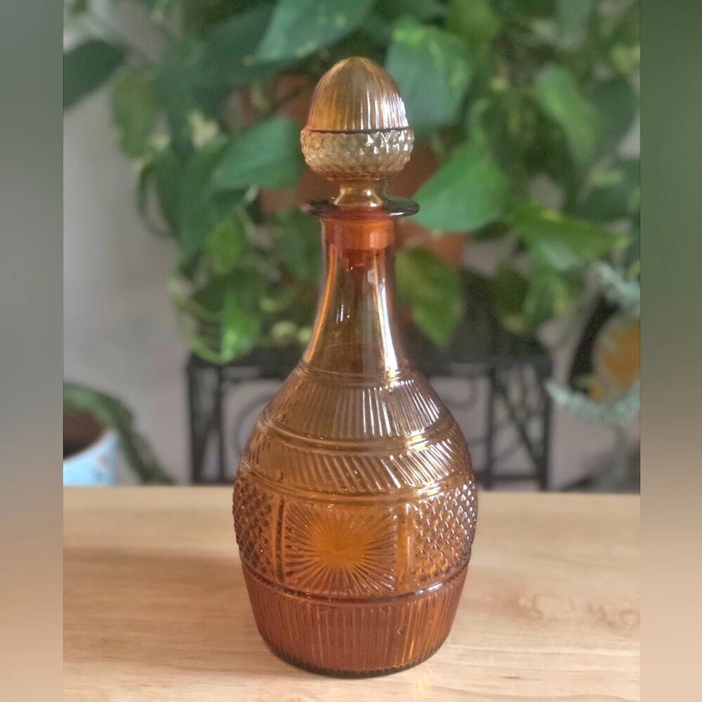 Vintage MMA - Museum of Modern Art Amber Glass Acorn Decanter - Vintage Barware - Vintage Decanter for Brandy Whiskey •CONDITION: Very good. No chips or cracks. There is slight wear at the interior tip of the stopper; this is not a chip or jagged. •Size: 10 1/2” H x 3 1/2” W •Measurements are approximate and taken when item is laying flat and un-stretched. •When included stock photos are for visual styling only. Refer to the item's condition notes for details. •Items are accurately described and all flaws if any, are described and photographed. •Make offers via the offer button, do not send messages regarding price. •No additional measurements or photos •All items are cross-listed on multiple platforms •No trades •No holds •No modeling •Pet free •Smoke free BIN:FA-24-HG3 TAGS: MCM amber colored glass art glass whimsical sparkle EAPC Amber glass dining MCM bar ware drink ware vintage bar accessories brandy whiskey vintage decanter amber glass decor