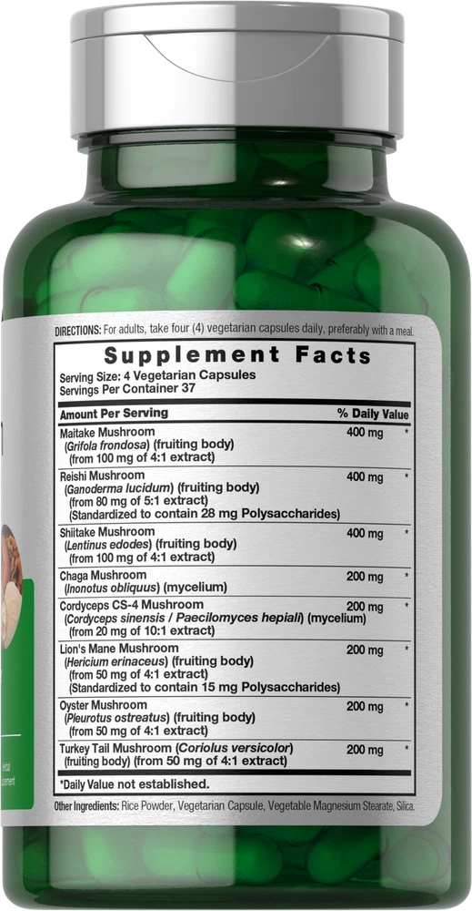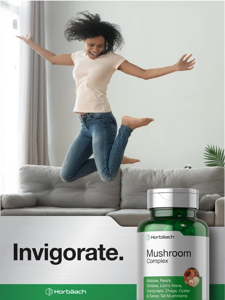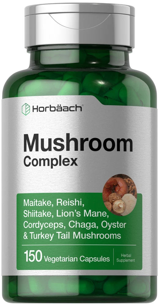 Supplementing with Mushrooms: Mushrooms have been a staple food in Asian and European culinary traditions for centuries and are now popular all over the world! These friendly fungi possess a wide variety of naturally occuring nutrients, most notably polysaccharides, a unique group of compounds only found in specific herbs. Finding your Mushroom Supplement: An herbal supplement is the best way to reap the nutritional benefits of mushrooms without any earthy taste. There are many single ingredient mushroom supplements, but a complex is the best way to get a wide-range of support. Looking for a high-quality blend for your wellness routine? Horbaach Mushroom Complex: Horbaach Mushroom Complex is the ultimate blend and nutritional source of mushrooms around! Our formula features a medley of mushrooms including Maitake, Reishi, Shiitake, Lion's Mane, Cordyceps, Chaga, Oyster and Turkey Tail in one powerful complex. Gluten-free and non-GMO quick-release capsules are lab tested for purity and potency, providing the exceptional quality you deserve at the best value. WARNING: If you are pregnant, nursing, taking any medications or have any medical condition, consult your doctor before use. If any adverse reactions occur, immediately stop using this product and consult your doctor. If seal under cap is damaged or missing, do not use. Keep out of reach of children. Store in a cool, dry place.