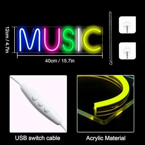 Return Policy Fast Delivery Trusted seller Music Neon Light,Neon Sign for Wall Decor Colorful Letters Neon Lights Sign Music Word LED Neon for Bedroom Game Room Club Bar Party Decoration,Game Room Decor,Room Decor Product Description Neon sign with the word MUSIC is individuality.Use LED lights sign to enliven a living room, retro fit a kitchen, or make a stylish bar or iconic game room.The cute & modern design is also a great addition for your children's bedroom. MUSIC Neon Light Signs New LED Tube Technology - Neon Lights Made by Colored LED Tube, Compared with traditional glass neon lights, it is more bright and safer, environmentally friendly, durable, power saving and no noise.Neon light produces no heat after long-time use. Simple Operation: The music neon effect sign can be powered by device with USB charging port, such as USB charging hubs, computer.Need to be paired with a low-voltage 5V/1A adapter plug for use,The neon night light has its own independent switch, which can avoid the trouble of frequent plugging. “MUSIC”Neon Sign: The size of music word led neon sign is 15.7 x 4.7 in.Creative word neon lights can replace the dull desk lamp to add fun at party. You can place neon light anyw to decorate the room. Room Decor & Perfect Gifts: Multicolored word decorative wall neon lights can be used as gifts for girls, boys, children, colleague, family on Valentine's Day, Christmas birthday. The letter neon lamp sign is also a great decoration for living room, restaurant, office, store, etc. Shipping Returns Payment Shipping Shipping is FREE to all addresses other than APO/PO boxes in the lower 48 states. All our stock ships from US-based warehouses. Shipped via USPS or UPS (depending on location and package weight) Unless stated otherwise, all orders will ship within 24-72 hours of your payment being processed. Check our feedback to see the great reviews of FAST shipping we offer. Returns Seller does not accept returns Payment We currently accept payment via eBay managed payments only. Once payment is cleared, we will dispatch your shipment within 1-3 business days. Please refer to the "Shipping" tab for more information regarding shipping speed to your destination.