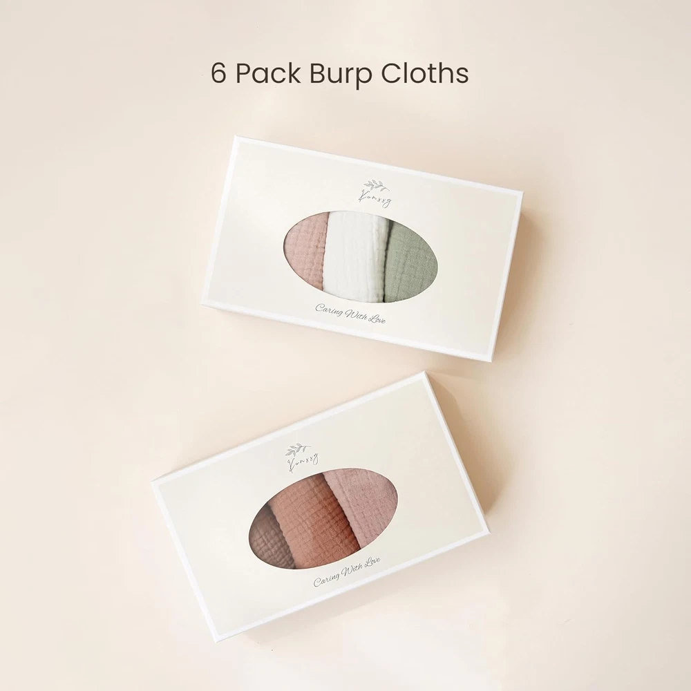 100% Cotton (Muslin) 【SOFT and SUPER ABSORBENT】- These burp cloth are made of 100% cotton (Muslin) for maximum absorption with skin-friendly soft touch. The softest and super-absorbing cotton material is safe for your baby's sensitive skin. 【MULTI-FUNCTIONAL USES】- Baby Burp Cloth Sets can be used in many different ways: they can be used as Burp Cloths, Washcloth, Essential Bibs and Pillow Towel, crafted with ultra-soft fabric to ensure your baby stays comfortable. 【GENEROUS SIZE】- Our muslin burp cloths is way large enough to use. The size is ideal for adequately absorbing the mess slurped up and large enough to provide full coverage for your shoulders without getting any spit-ups on your cloth! 【SET OF 6 UNISEX COLORS】- Each piece is specifically handcrafted with classic prints and handpicked unisex colors that will easily match any outfit, suitable for both boys and girls! A convenient and trendy solution to Newborn Mommies! 【AWESOME BABY GIFT】- Each set are well made and neatly packaged. This 6 pack of baby muslin burp cloths set will make a practical and thoughtful gift on baby showers, baby registry, Christmas, Housewarming, or on any special gifting occasion. Product Description Muslin Baby Burp Cloths Awesome Baby Essentials Soft and Absorbent The softest and super-absorbing cotton material is safe for your baby's sensitive skin. Full Shoulder Coverage Large enough to provide full coverage for your shoulders without getting any spit-ups on your cloth! Multi-Functional Use Sets of baby burp cloths can serve multiple purposes, including use as a burp cloth, washcloth, essential bib, and pillow towel. Best Baby Shower Gifts These lovely burp cloths are suitable for both boys and girls, and easy to wash and dry quickly. Chic Solution for Drooling Burp Cloths for Everyday Use Konssy baby products-caring with love Add to Cart Add to Cart Add to Cart Add to Cart Add to Cart Add to Cart Add to Cart Customer Reviews 4.9 out of 5 stars 259 4.9 out of 5 stars 1,468 4.8 out of 5 stars 2,015 4.8 out of 5 stars 798 4.9 out of 5 stars 170 4.8 out of 5 stars 197 4.8 out of 5 stars 163 Price $18.99 $ 18 . 99 $18.99 $ 18 . 99 $19.99 $ 19 . 99 $16.99 $ 16 . 99 $16.99 $ 16 . 99 $13.99 $ 13 . 99 $17.99 $ 17 . 99 Fabric Type 100% Muslin Cotton 100% Muslin Cotton Cotton on Front Fleece on Back 100% Muslin Cotton Polyester Cotton on Front Fleece on Back 100% Muslin Cotton Feature Soft, Absorbent, Skin-friendly Soft, Absorbent, Skin-friendly Soft, Absorbent, Skin-friendly Soft, Absorbent, Skin-friendly Soft, Stretchy, Adorable Soft, Absorbent, Skin-friendly Soft, Absorbent, Skin-friendly Pieces 6 6 8 8 2 6 6 Machine Washable ✔ ✔ ✔ ✔ ✔ ✔ ✔ Gender Great for baby boys baby girls Great for baby boys baby girls Great for baby boys baby girls Great for baby boys baby girls Great for baby boys baby girls Great for baby boys baby girls Great for baby boys baby girls