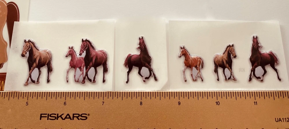 Add some Welcome to the West flair to your scrapbook pages or other paper projects with this Mixed Sticker Lot! Includes... 1 New Full Sticker Sheet & 6 Mxd. Rare Puffy Vinyl Horse Stickers!